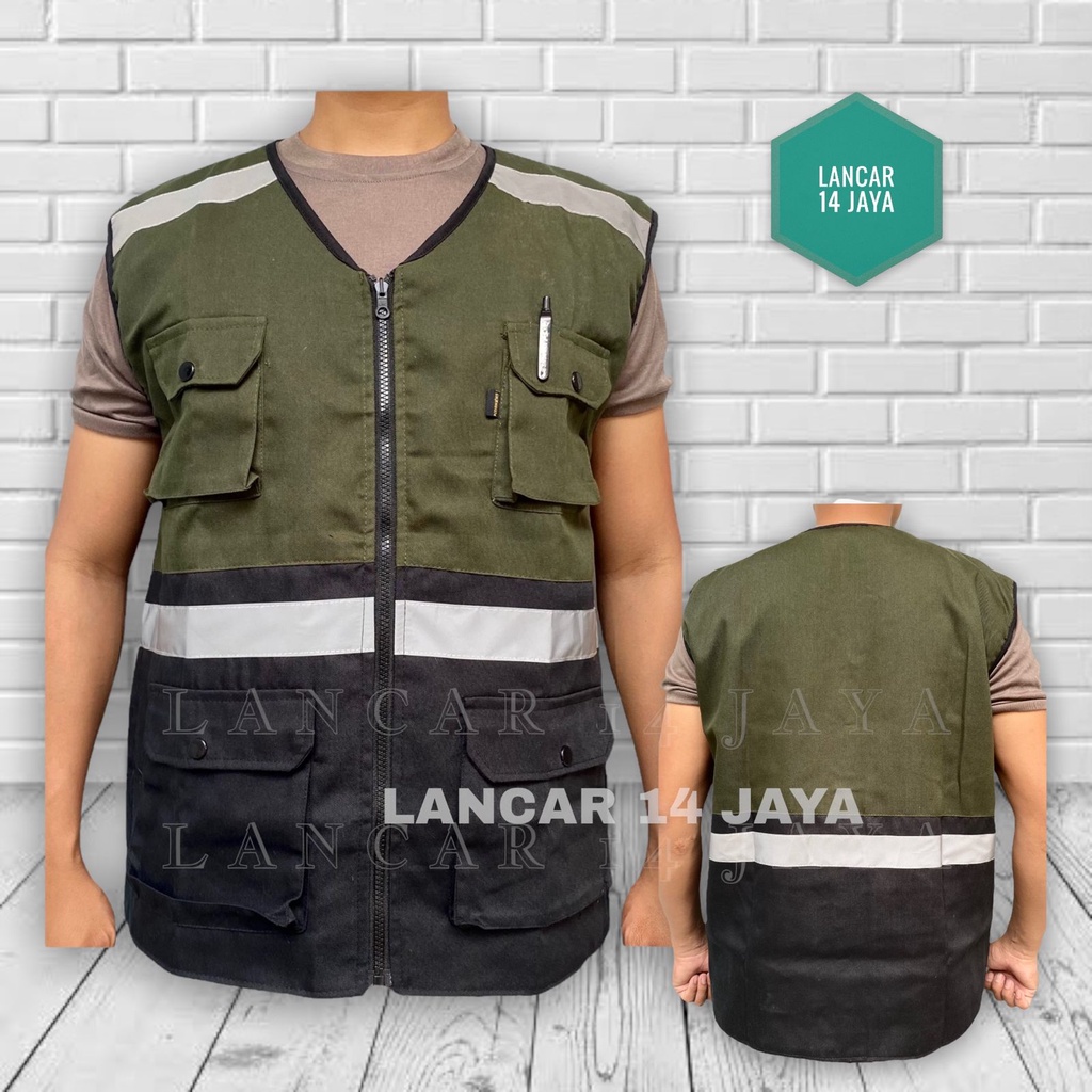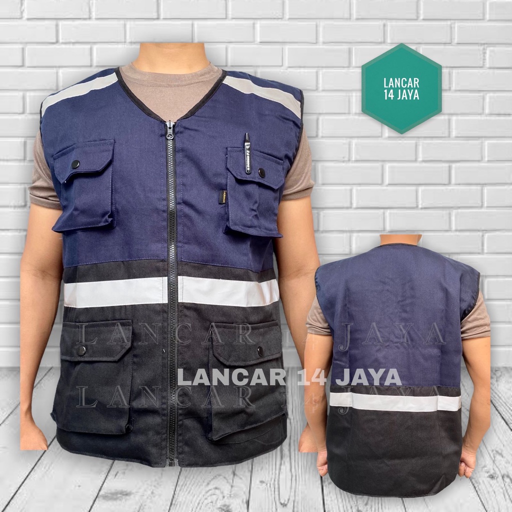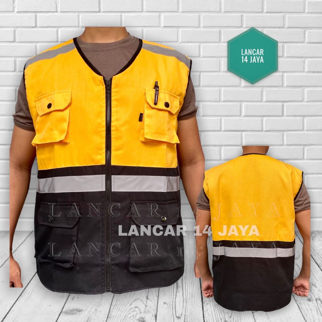 Rompi Safety Kombinasi / Rompi Proyek / Rompi Parkir / Rompi Motor/ Rompi Karyawan Dasar Hitam