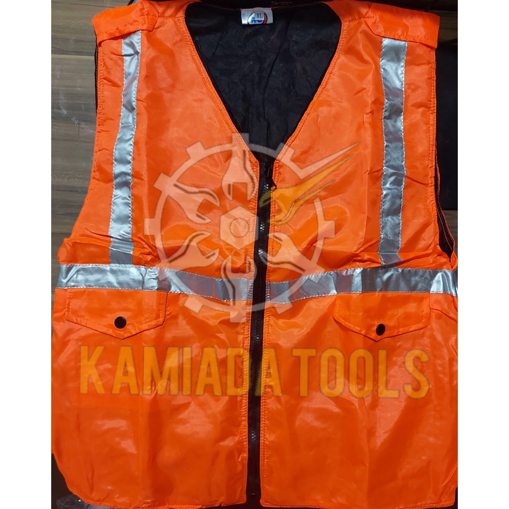 Rompi Safety Parasut Hijau/Merah/Rompi Busa bahan Parasut + Kantong