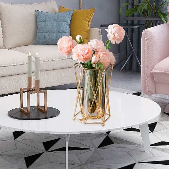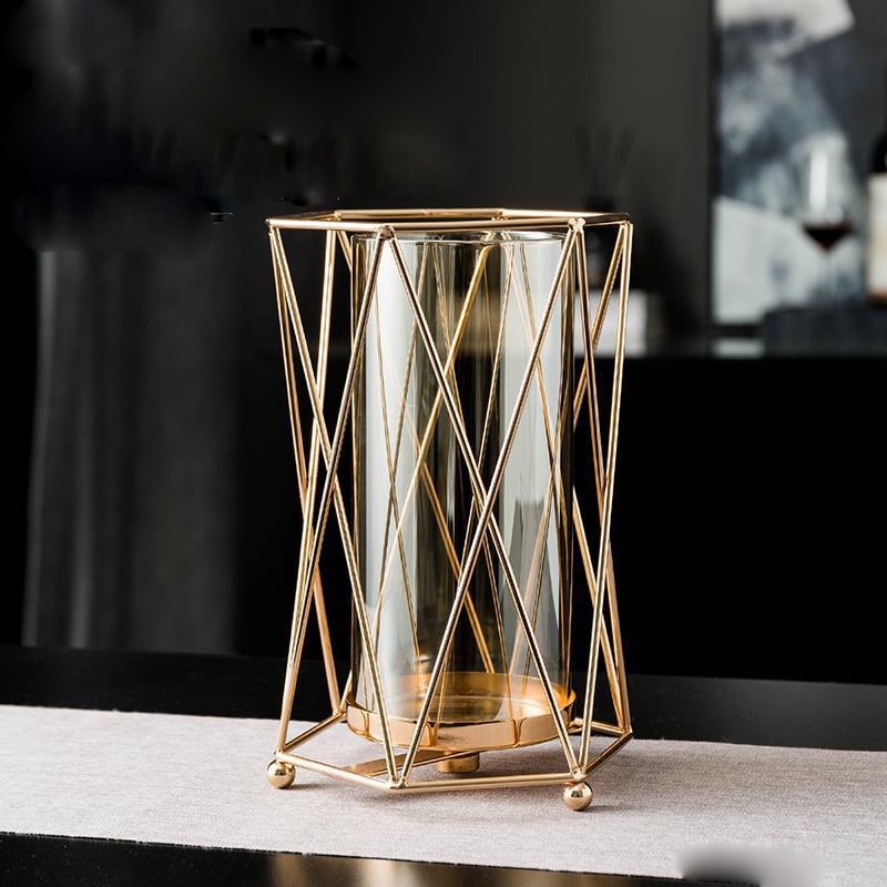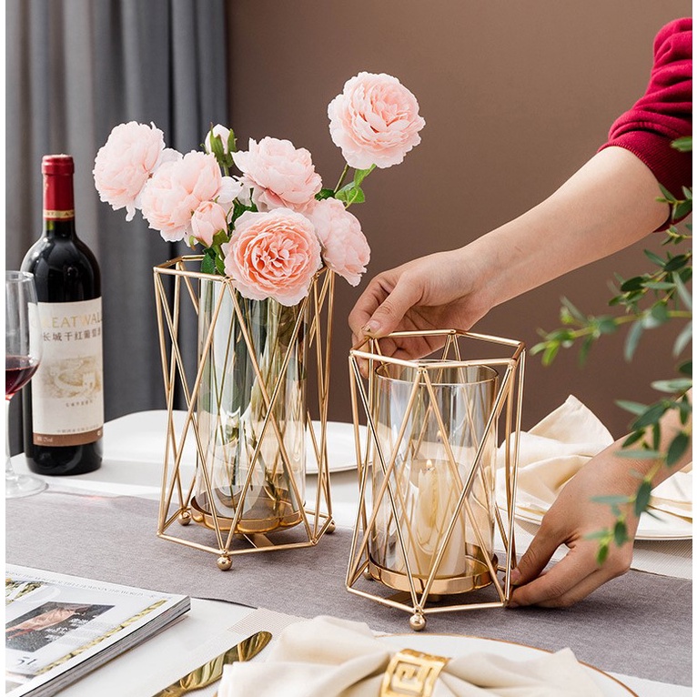 Rona Vase Glass / Pot Vas Bunga Kaca Transparan Golden Dekorasi Ruangan Mewah Nordic / Tempat Lilin Transparan / Luxury Vase Decoration