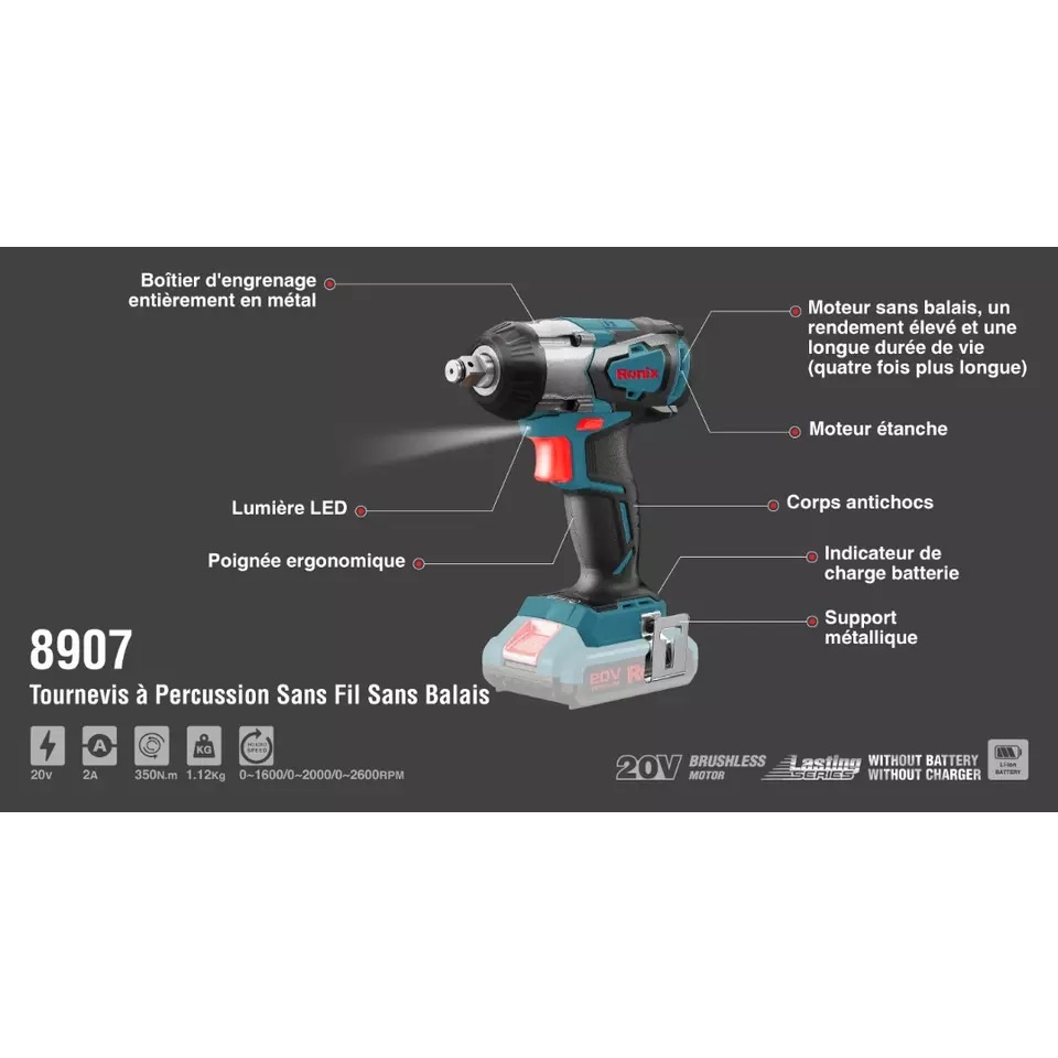 Ronix Model 8907K 20V Cordless Brushless Impact Wrench