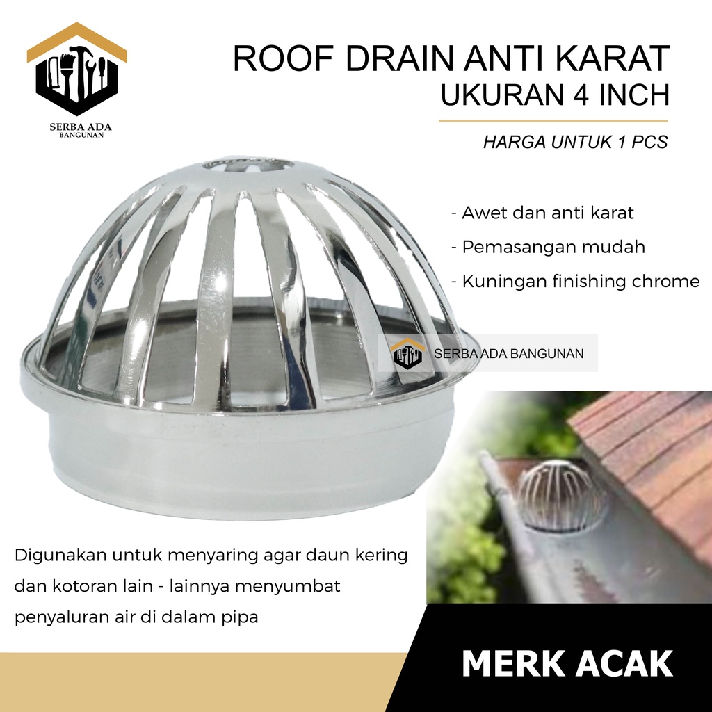 Roof Drain 4 inch kuningan / saringan talang air pembuangan air atap roofdrain
