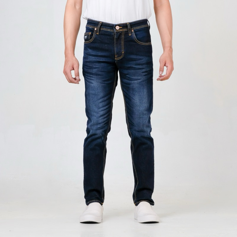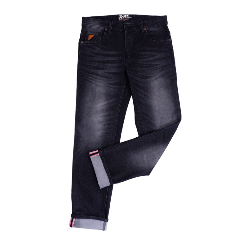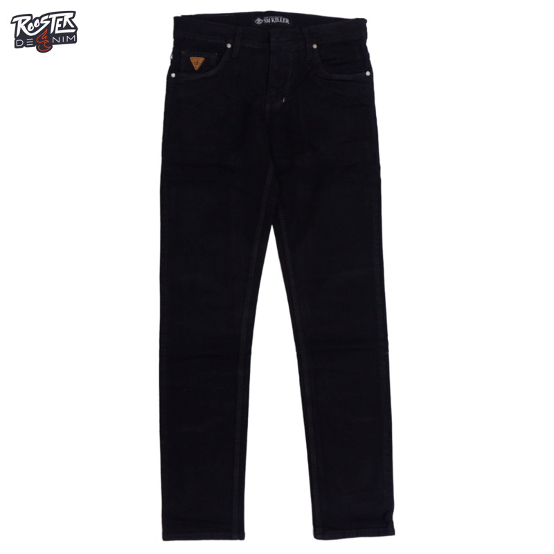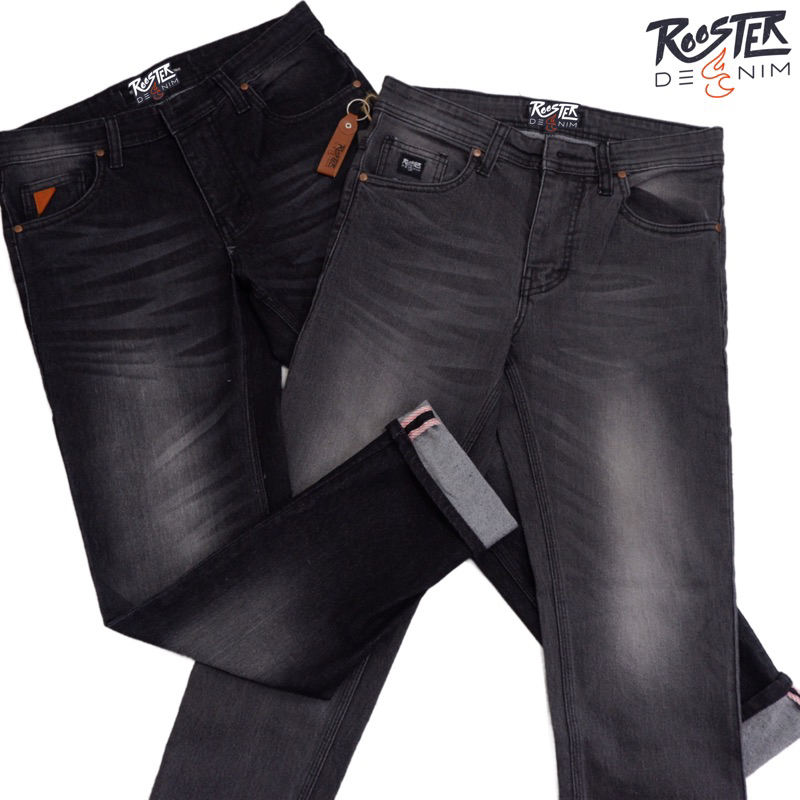 RoosterDenim Celana Jeans Pria Skinny Biker Motor Knee Rips Black Denim Selvedge