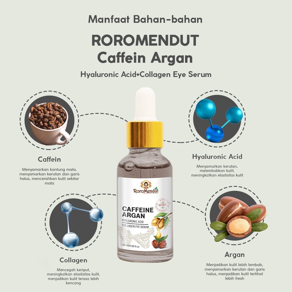 RORO MENDUT Caffein Argan Hyaluronic Acid + Collagen Eye Serum l Serum BPOM Anti Mata Panda & Kantong Mata