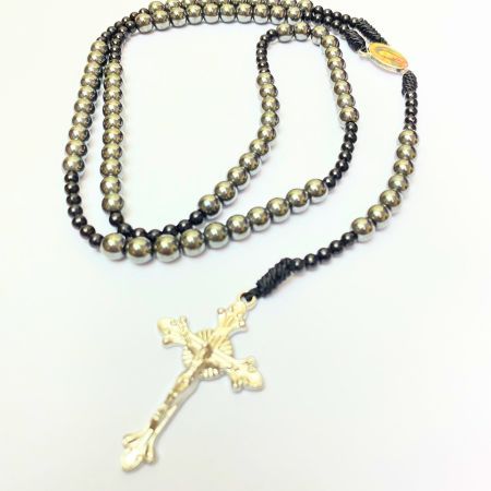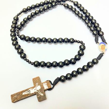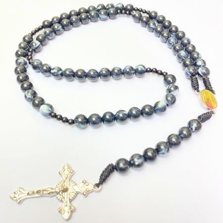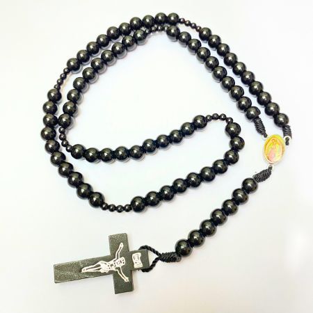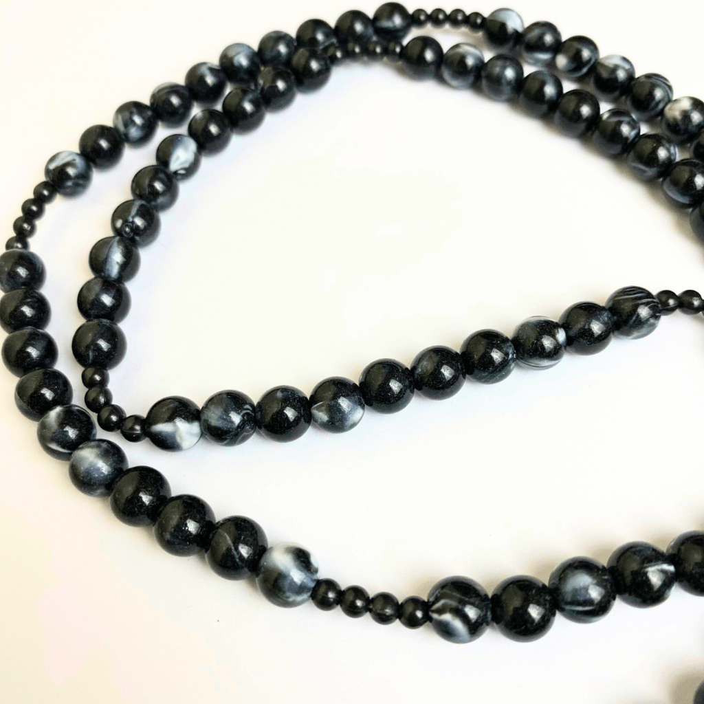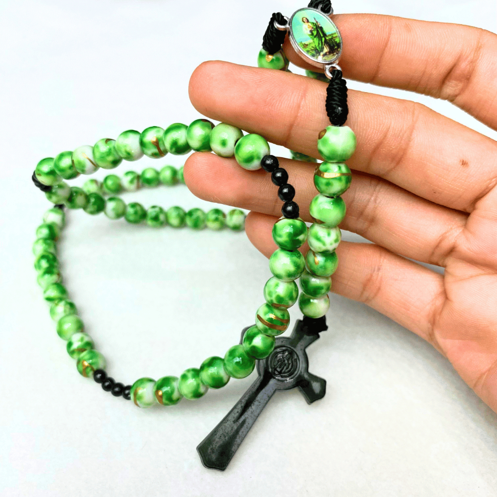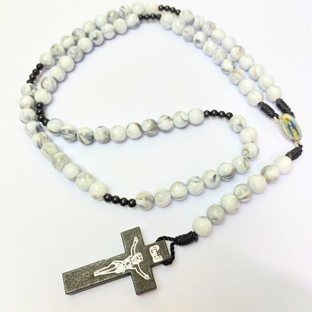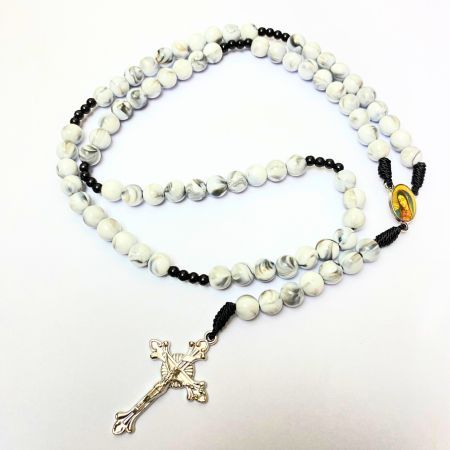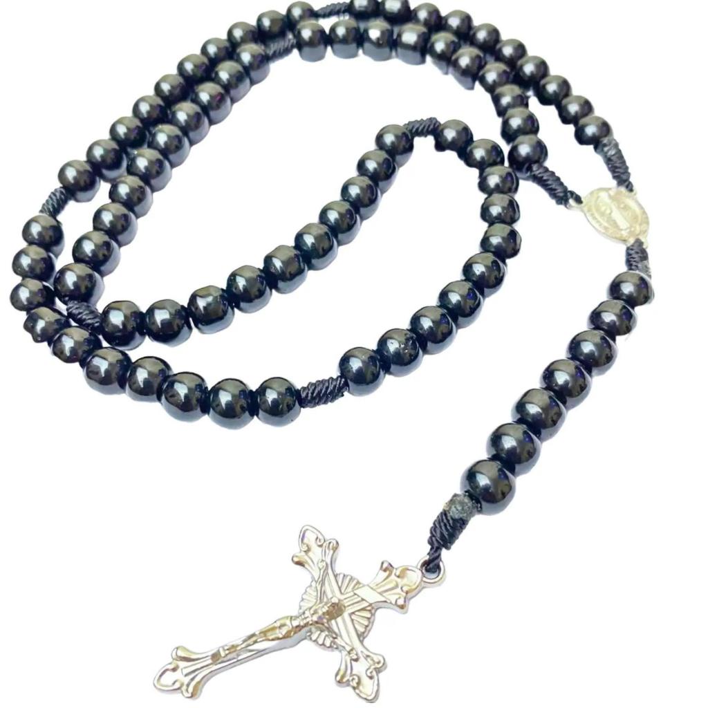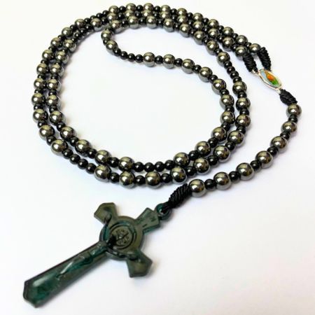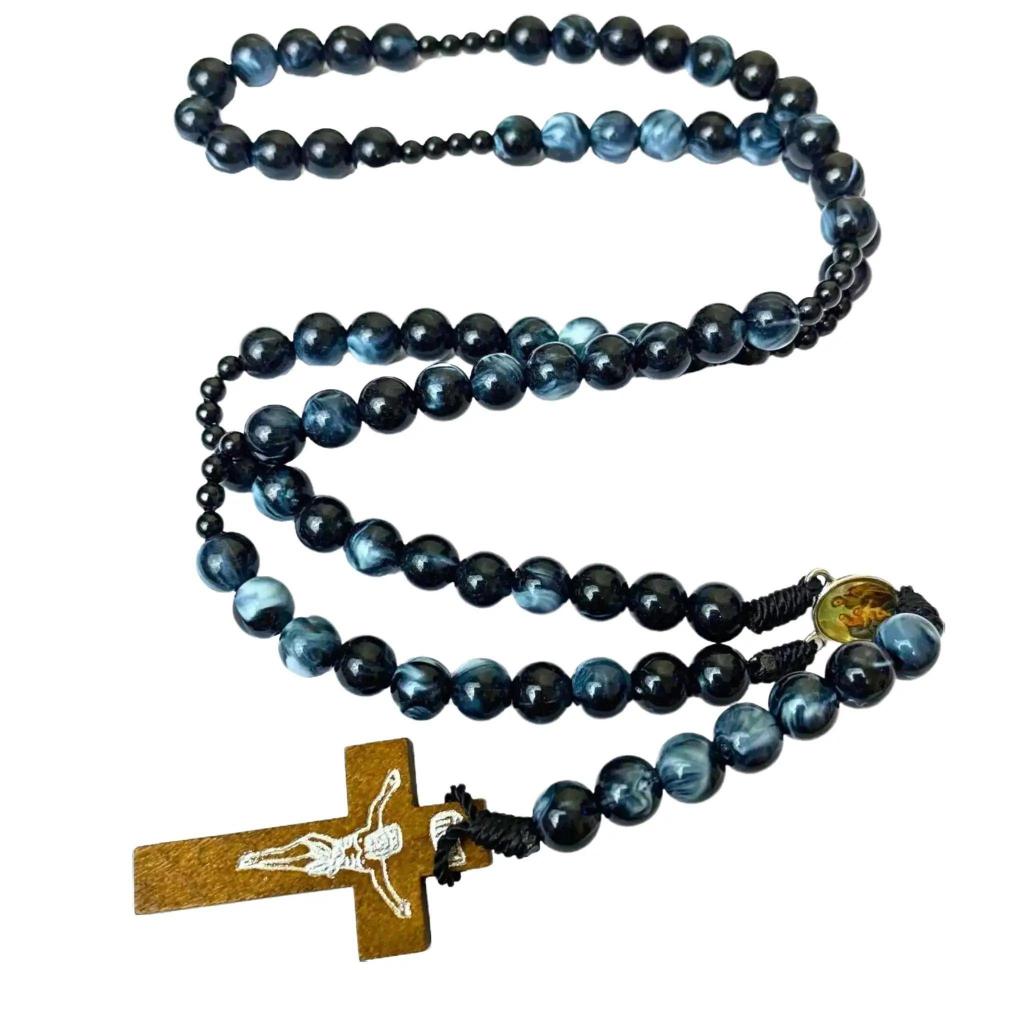 Rosario series hitam marmer bercorak eksklusif 77 bapa kami salib Benediktus santo perlindungan