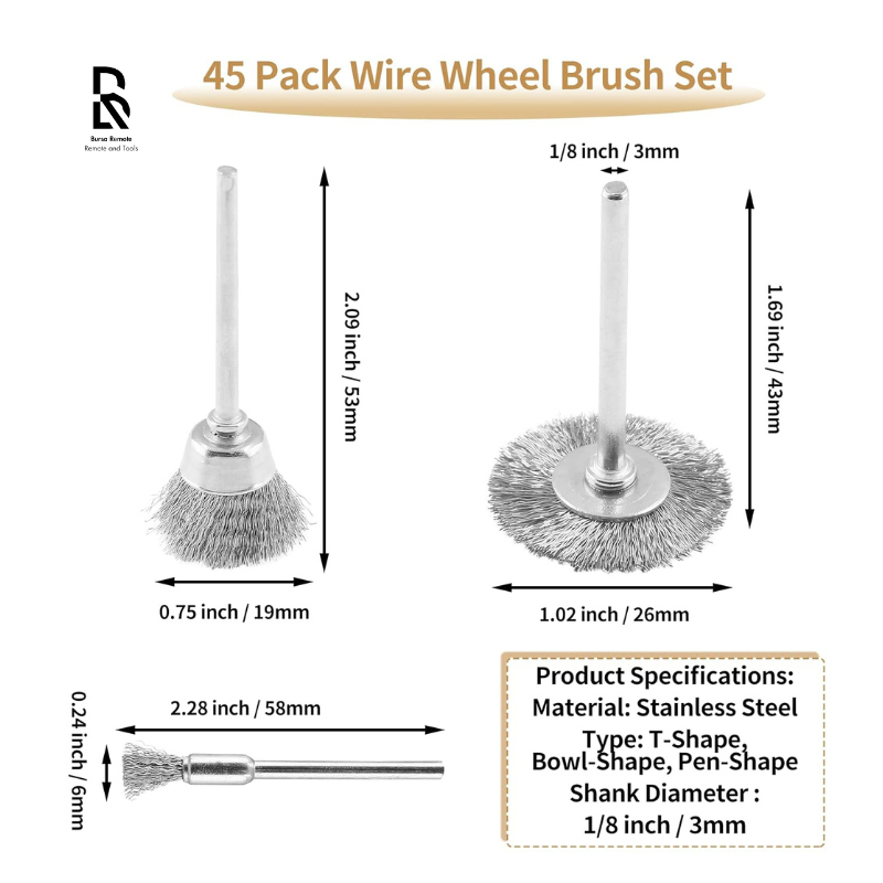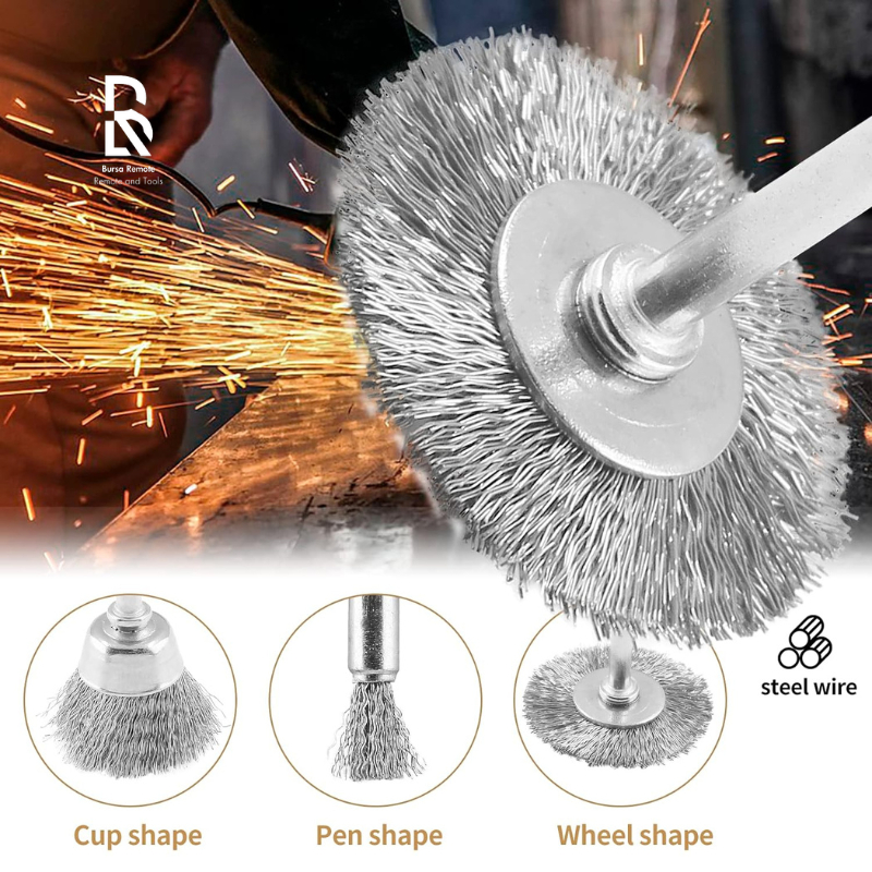 Rotary Wire Brush Set 3in1 Perkakas/Brush Grenda Piring Mangkok Lurus Kombinasi Set/Mata Bor Sikat Kawat