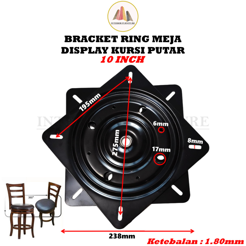 Rotator Kotak Ring Meja Putar Besi Hitam 6 8 10 Inch Ring Meja Putar Kursi Meja Makan