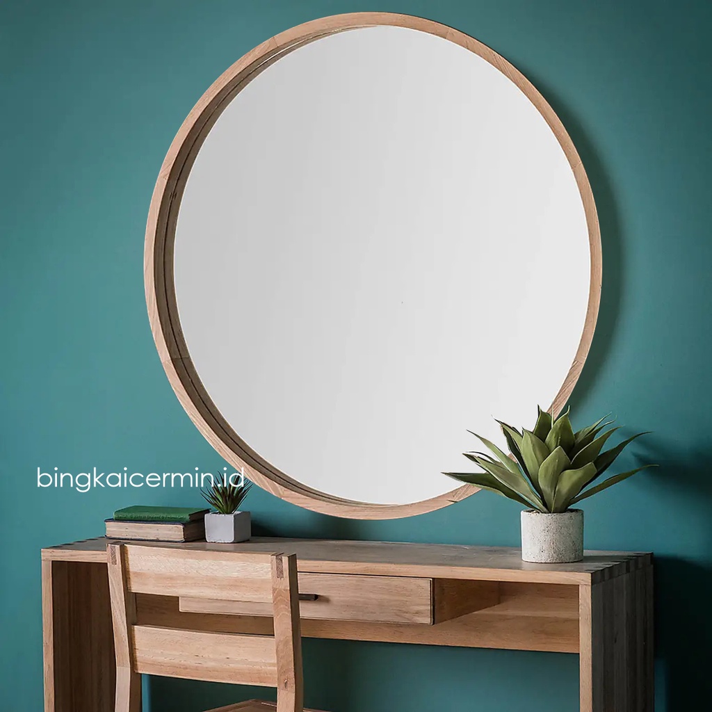 Round Mirror D100 Cermin Bulat Gantung Cermin Bulat Kayu Cermin Bulat Aesthetic Ruang Tamu