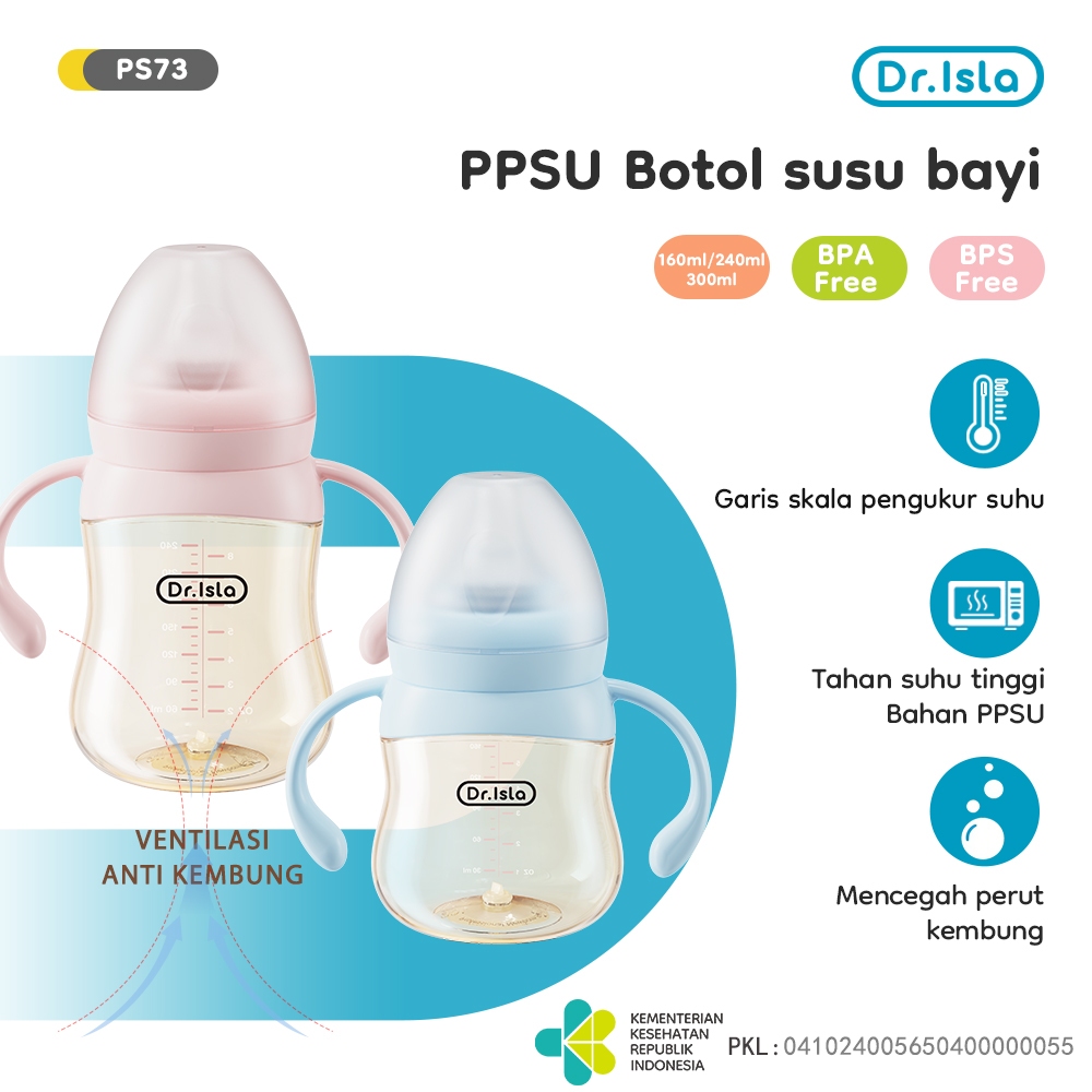 Dr.isla Bayi Botol Susu PPSU Anti Kolik Dan Kembung Wide Neck Baby Bottle Fungsi Tampilan Suhu PS73