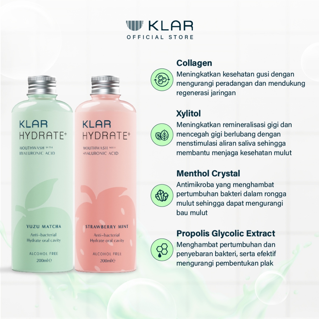 KLAR Hydrate+ Mouthwash | Atasi Mulut Kering, Gusi Sensitif & Perawatan Bau Mulut