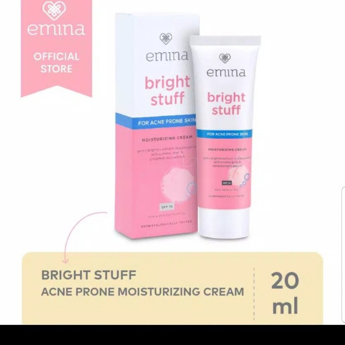 Emina Bright Stuff for Acne Prone Skin Moisturizing Cream 20 mL - Pelembab Wajah Mencerahkan Untuk Kulit Mudah Berjerawat