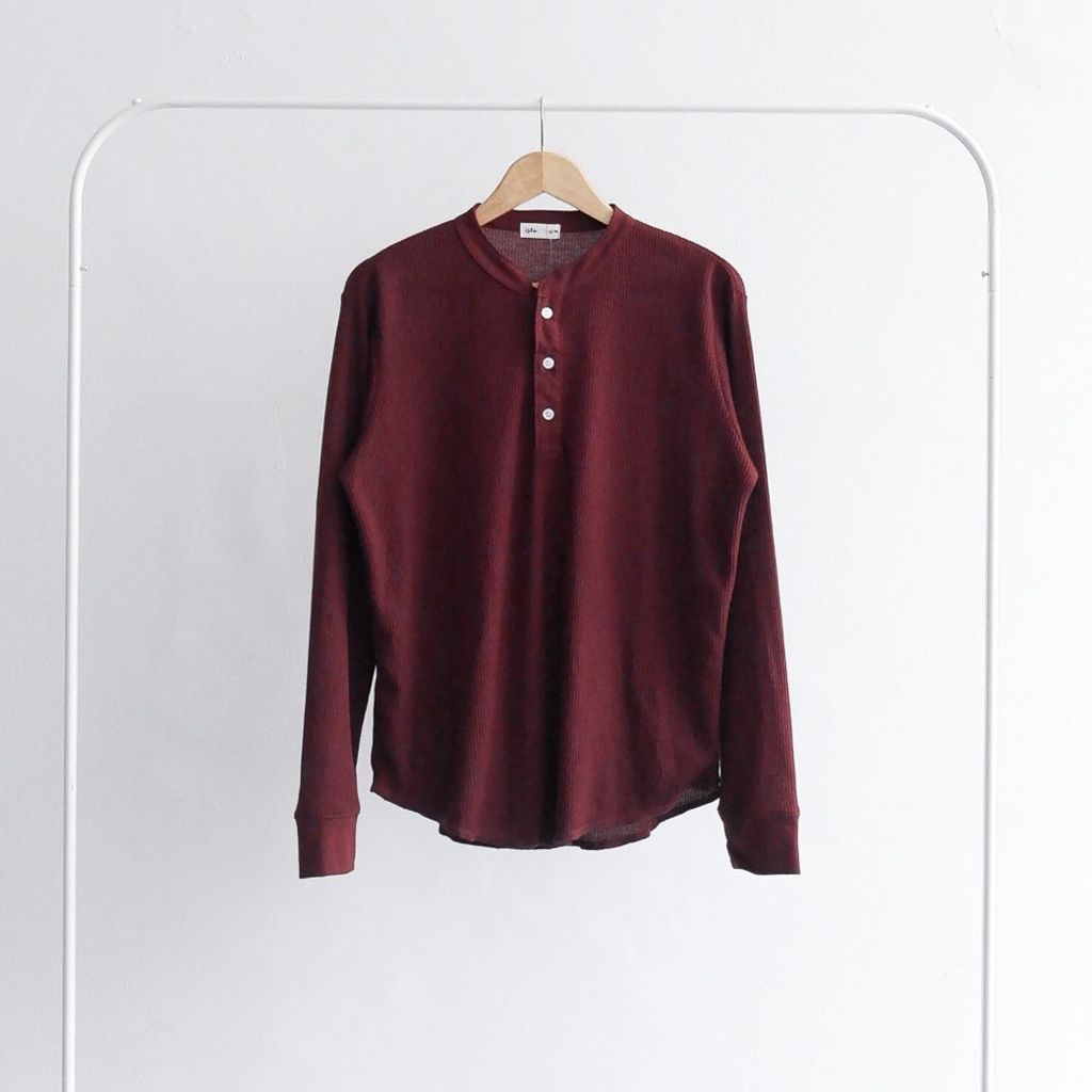 Isla for Men Smith Waffle Henley Neck T-Shirt Long Sleeve - Atasan Pria Lengan Panjang - Baju Pria - Baju Laki-laki - Baju Lebaran - Outfit Lebaran