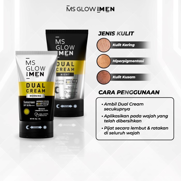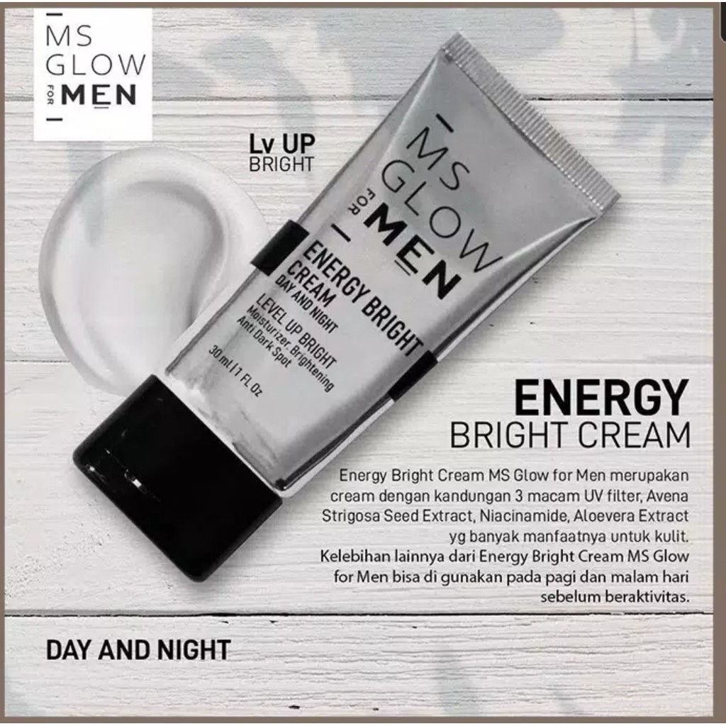 MS GLOW FOR MEN Energy Bright Cream Dual Cream Moisturizer Pelembab 30ml