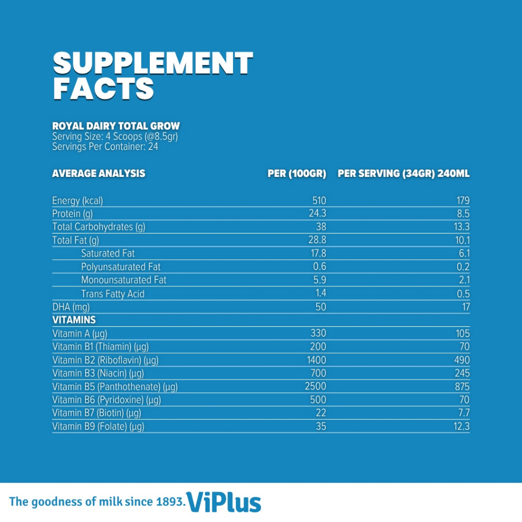 Royal Dairy Total Grow Organic 800 Gram - USIA 1-15 TH - Susu Pertumbuhan Anak Susu Formula Organik