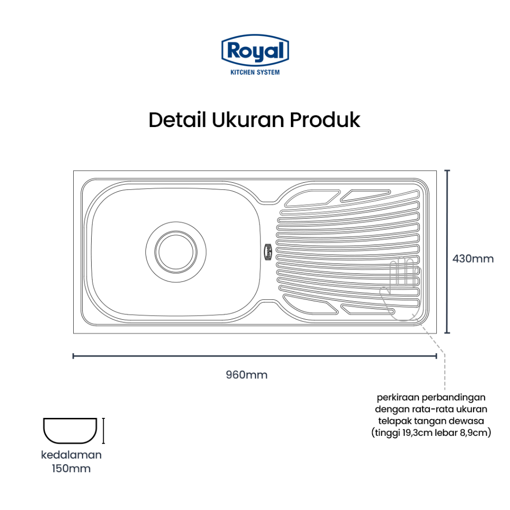 Royal Kitchen Sink Wastafel Dapur SB 36 | Bak Cuci Piring 96 x 43 Cm