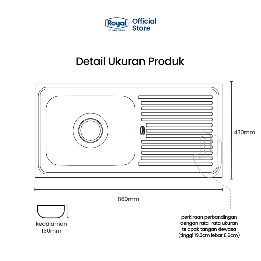 Royal Kitchen Sink Wastafel Dapur SB 38 | Bak Cuci Piring 86 x 43 Cm