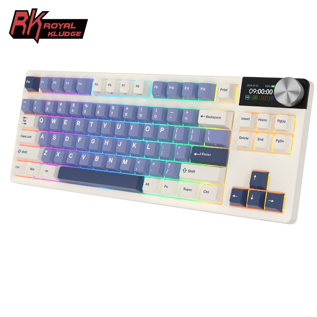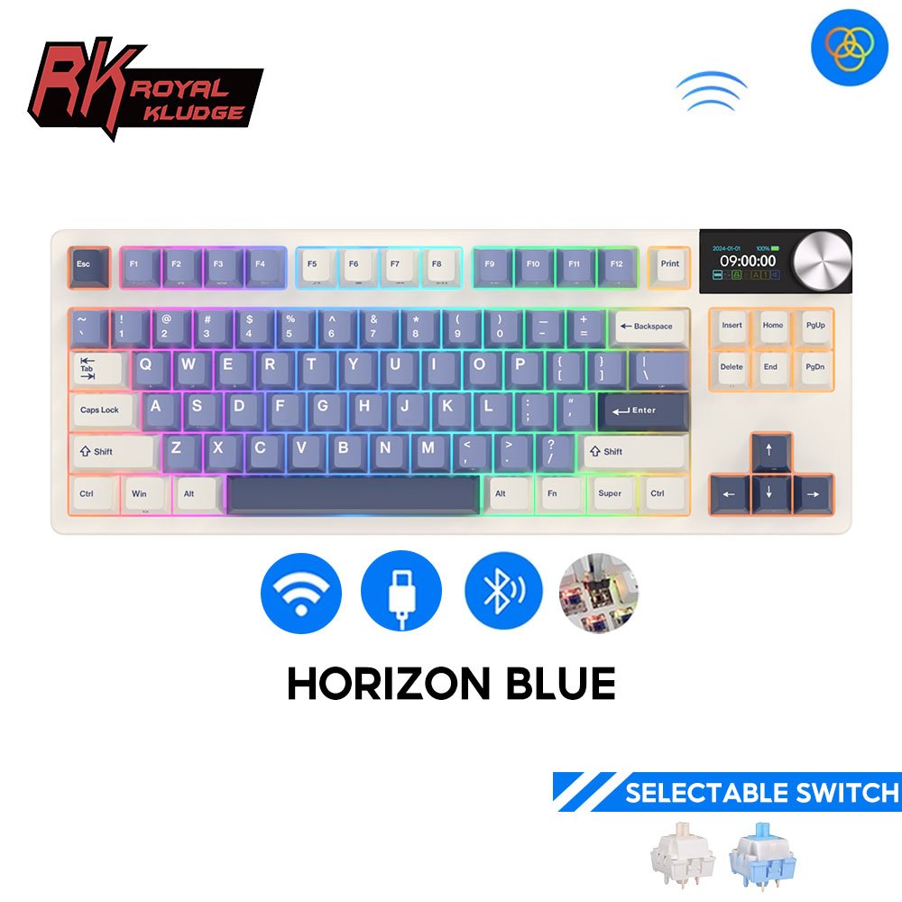 Royal Kludge RK S85 Horizon blue 85 Key Knob Buttons With TFT Screen Gasket Mechanical Keyboard