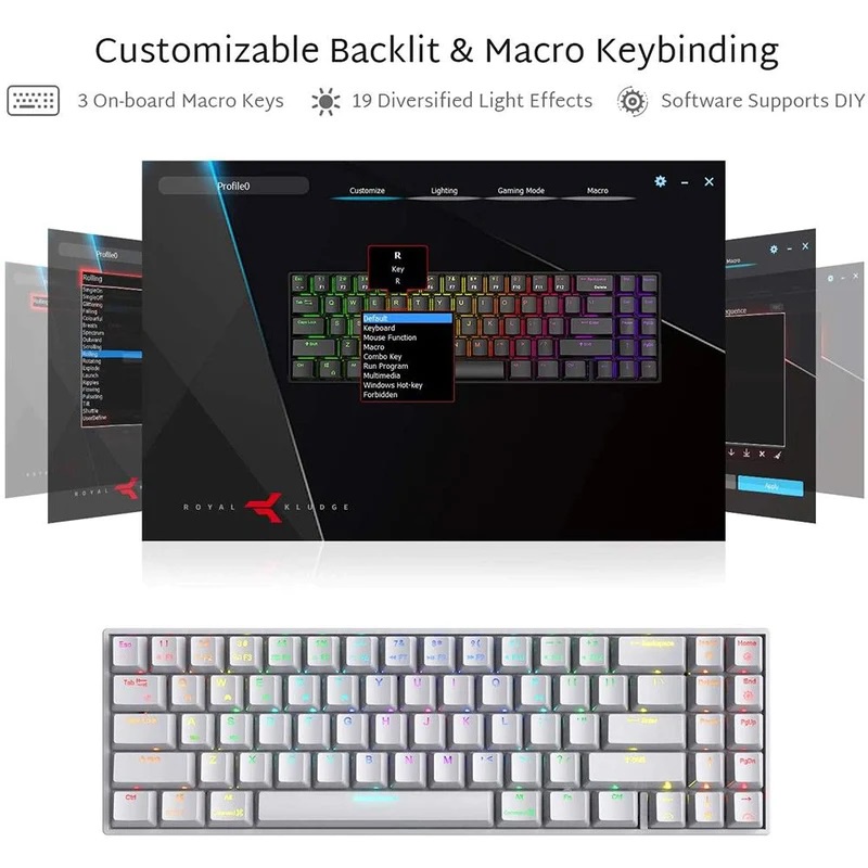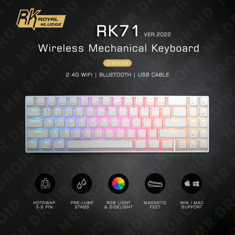 Royal Kludge RK71 RGB Wireless Mechanical Keyboard Universal Hotswap Rechargeable