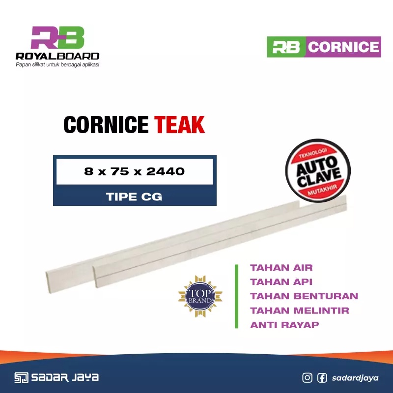 RoyalBoard Cornice Teak CG Dekorasi Langit-Langit Lis Plafon / Plint Lantai Skirting Papan Lisplang GRC Polos Panjang 2 meter
