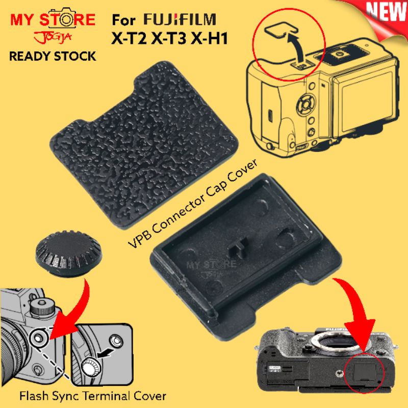 Rubber Bottom Trim Vertical Battery Grip Connector Cap Cover Port Karet Tutup Konektor VPB Bawah Body Camera Fujifilm X-T2 X-T3 X-H1 + Flash Sync Terminal Cover BG VG Baterai Sync VPB Vertical Power Booster Body Kamera Fuji XT2 XT3 XH1 VG-XT2 VG-XT3