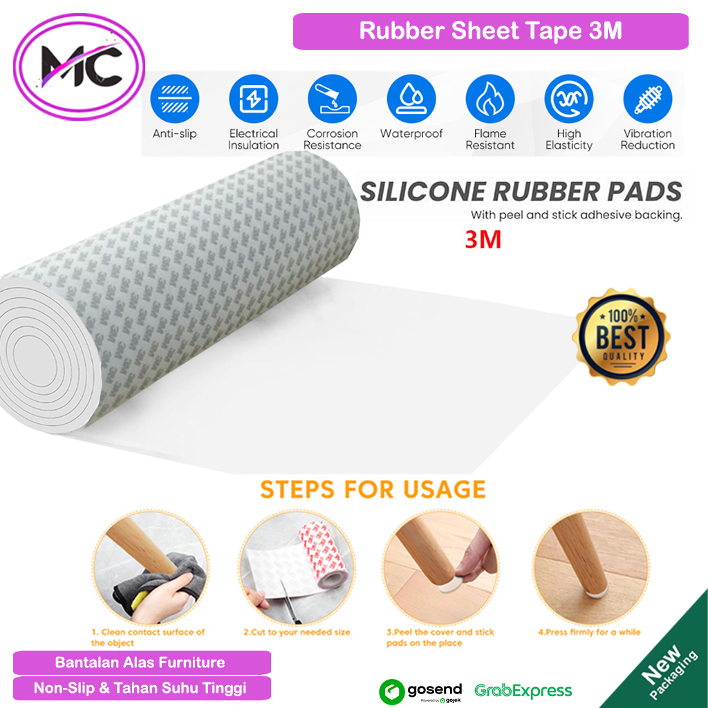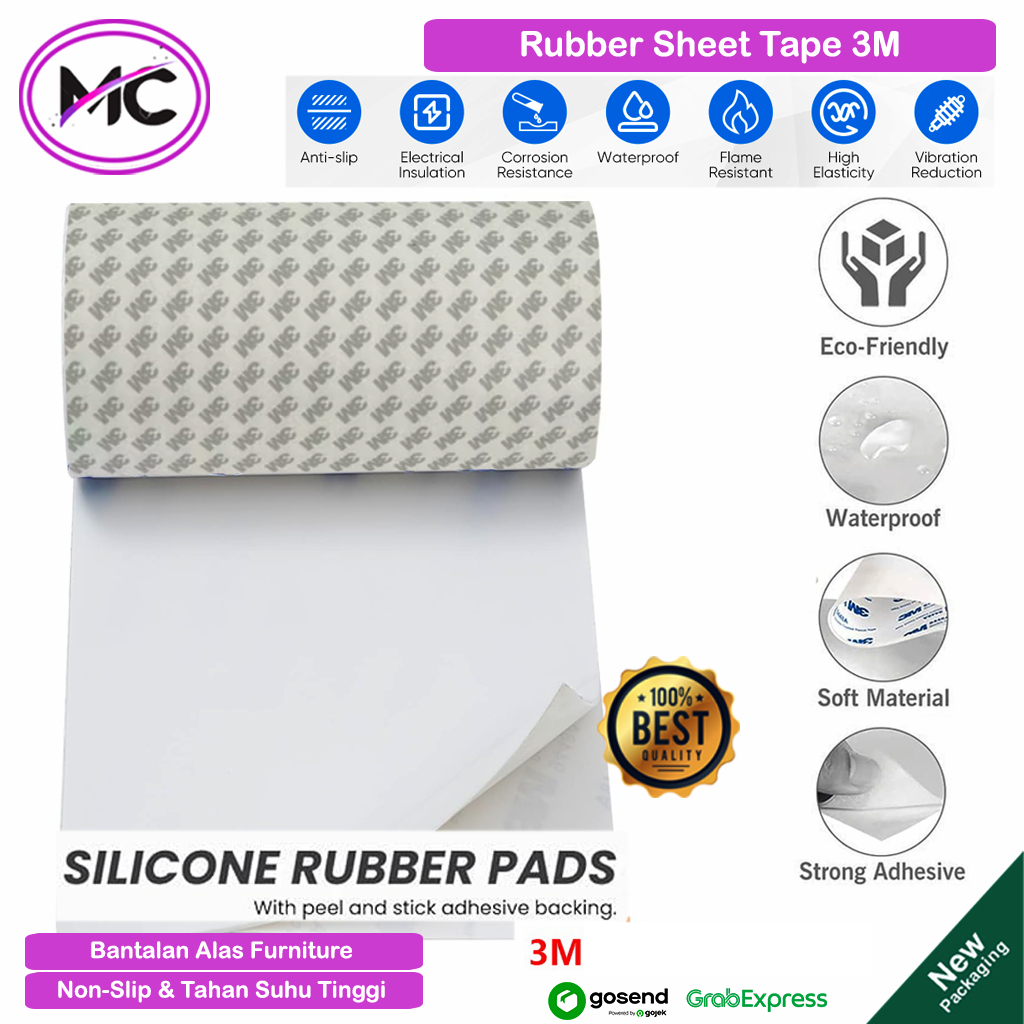 Rubber Sheet Adhesive Tape Karet Silikon Anti Slip Lembaran Tebal 1mm 2mm 3mm Alas Kaki Sofa dan Kursi Karet Gasket Pengaman Benturan pada Mobil dan Rumah Stiker Karet Perekat Serbaguna Ukuran 10x10 10x20 20x20 cm Murah