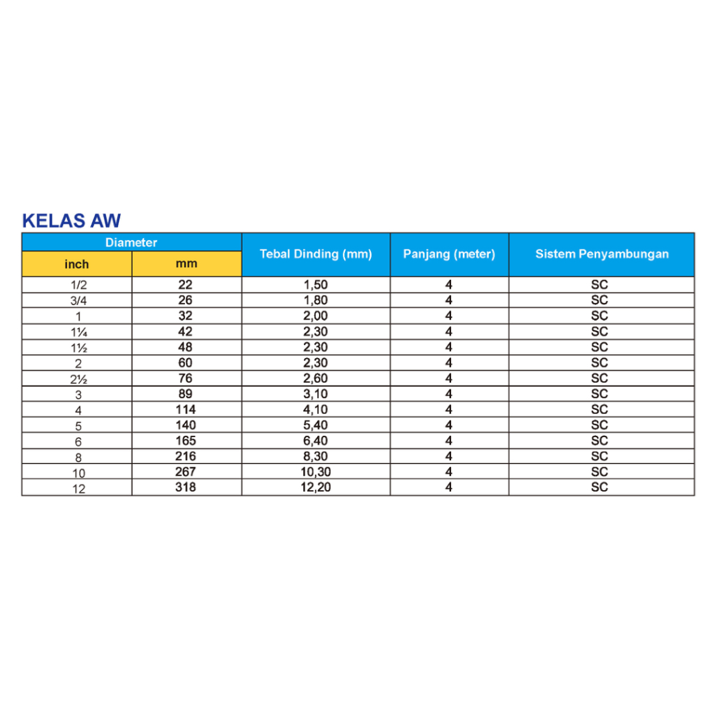Rucika Standard AW 3 (Rucika) / Pipa PVC Kelas AW