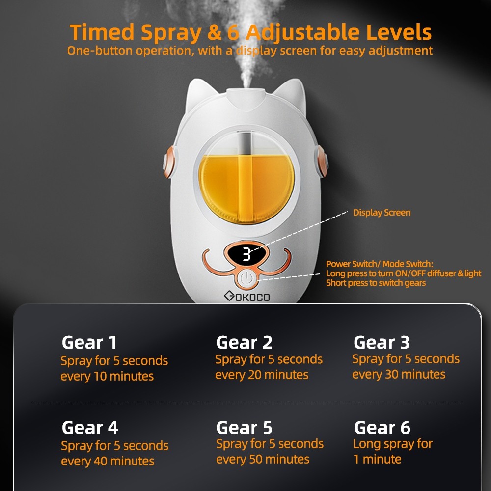 GOKOCO Cute Cat Air Purifier Spray Portable Smart Aromatherapy Diffuser - Humidifier Unit