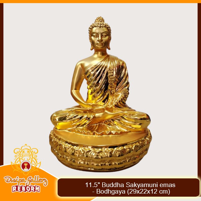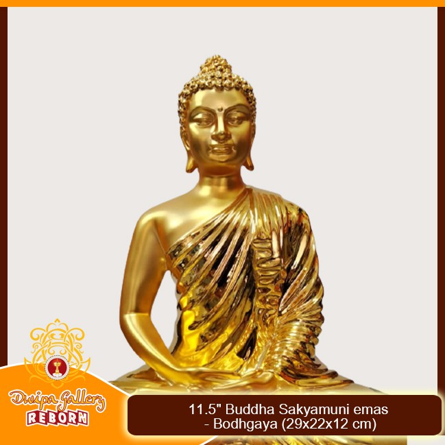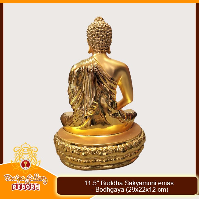 Rupang Patung Arca Buddha Sakyamuni / Gautama Full Chrome Emas 11 Inci
