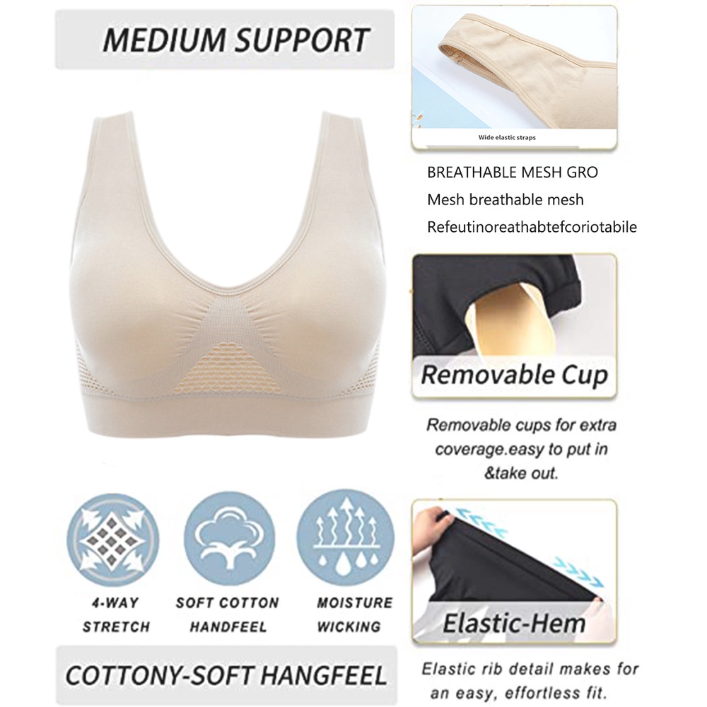 S-3XL Sport Bra Jumbo Push Up Seamless Bh Olahrage Tanpa Kawat Senam Gym Yoga S6