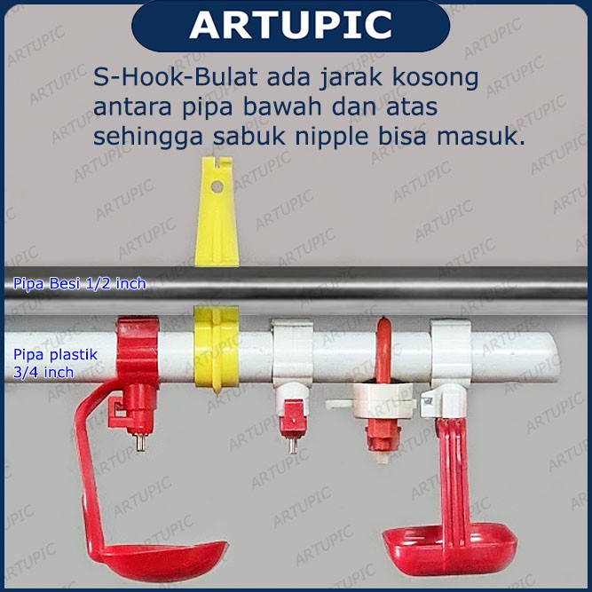 S-Hook Shook S-Hanger Shanger gantungan pipa kandang ayam nipple Artupic S-Hook BULAT