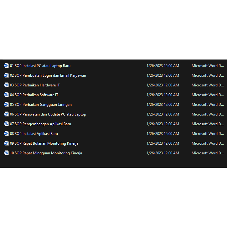 S.O.P IT Support Technology Information Informatika SOP TI + Flow Chart + Perbaikan Perawatan Pengembangan Rapat Monitoring Kinerja Team