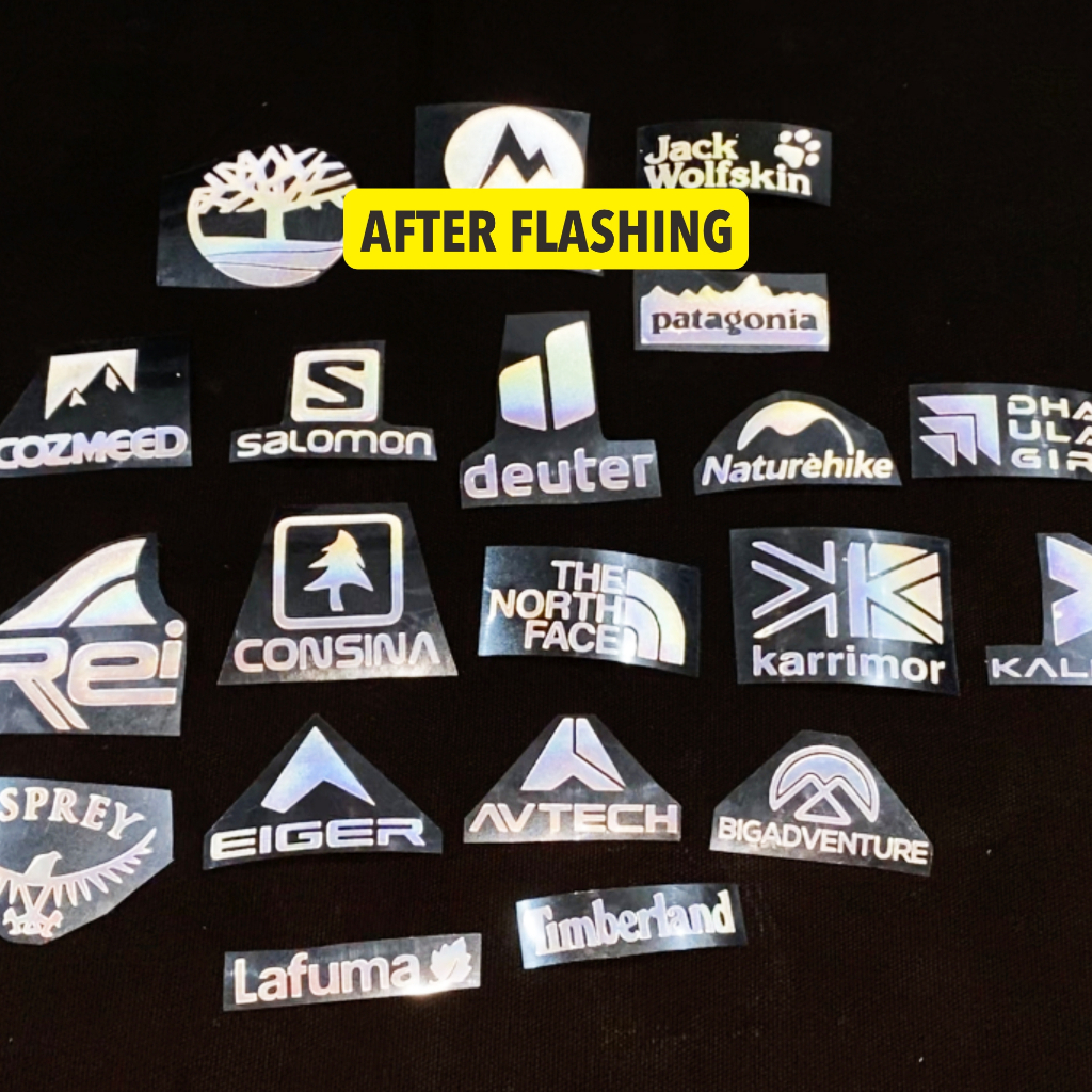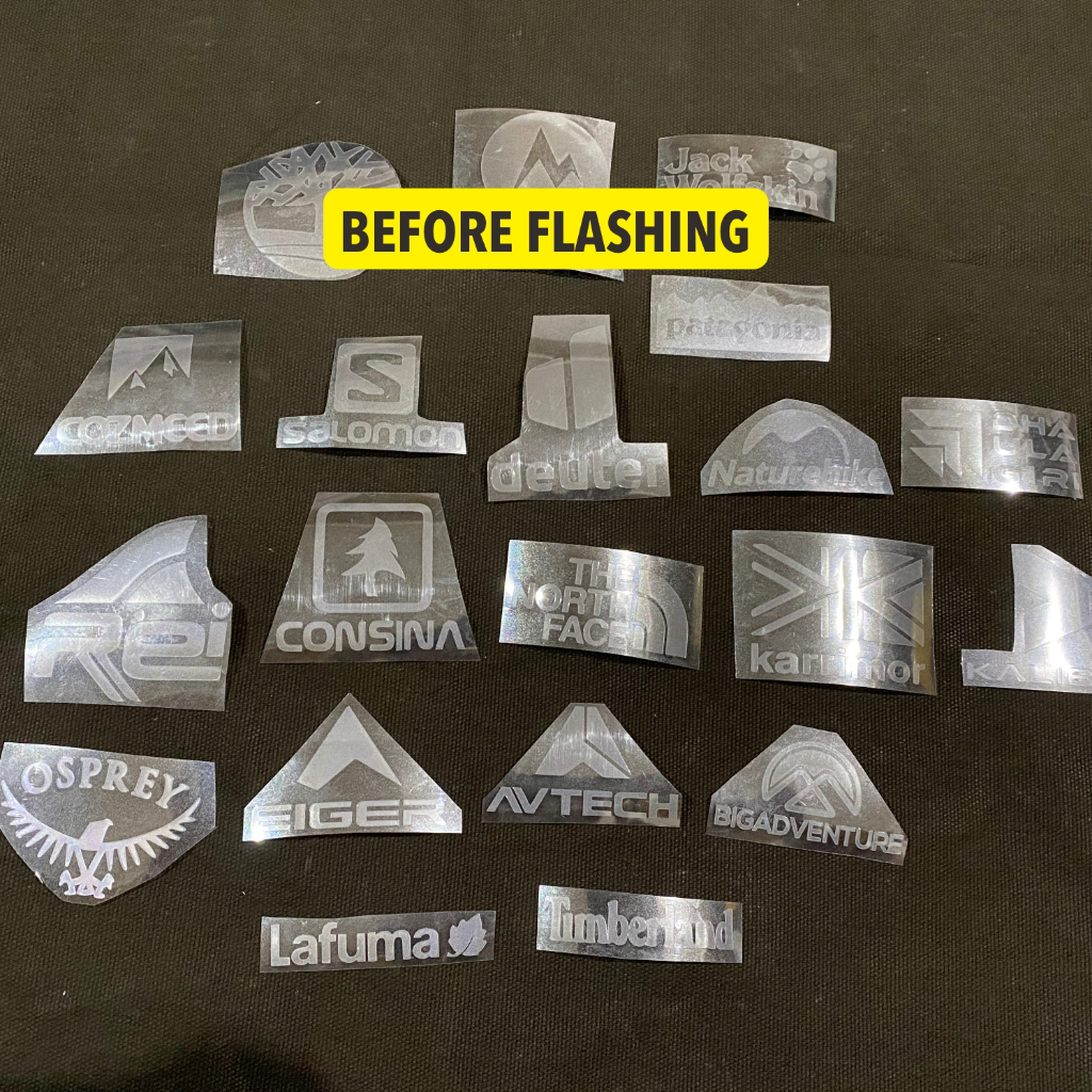 SABLON POLYFLEX Reflektif BRAND Outdoor PATCH STIKER SABLON Logo Setrika / cetak print DTF POLYFLEX Sablon menyala Baju