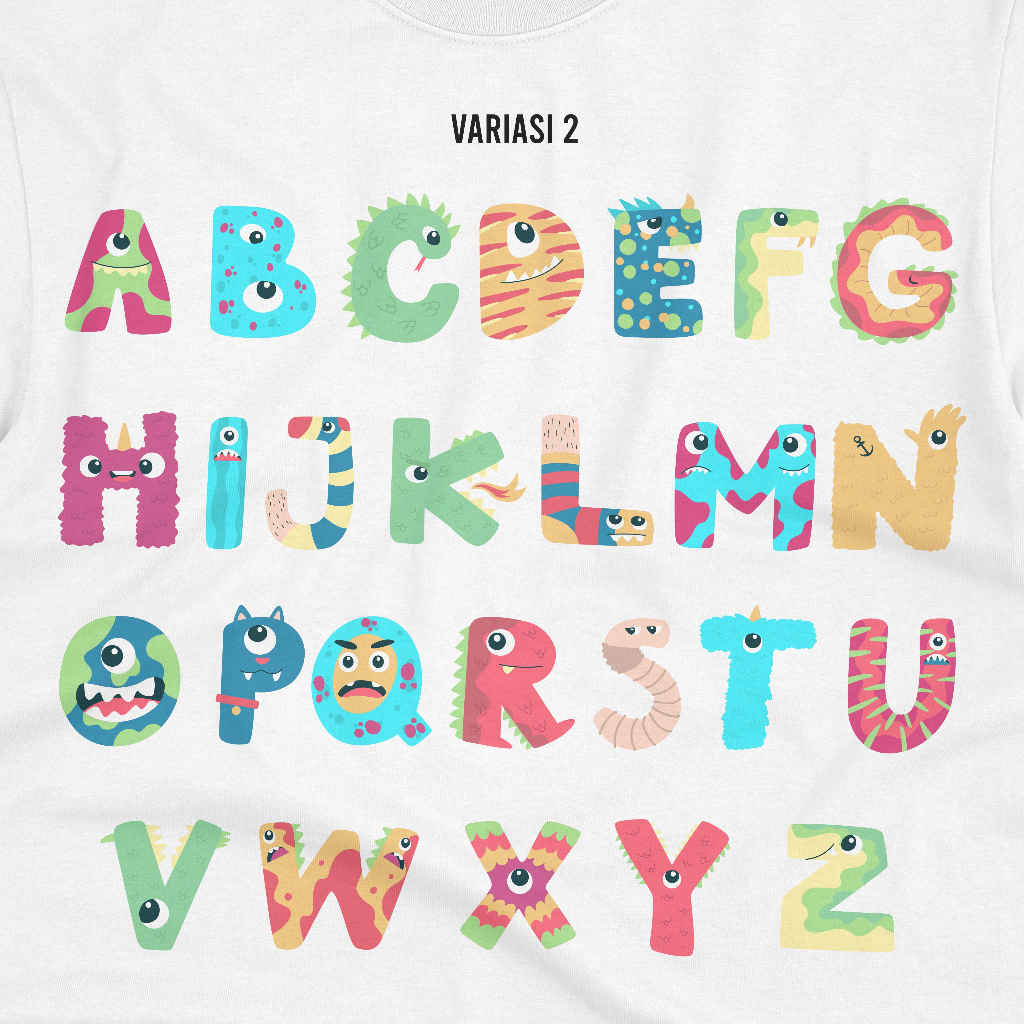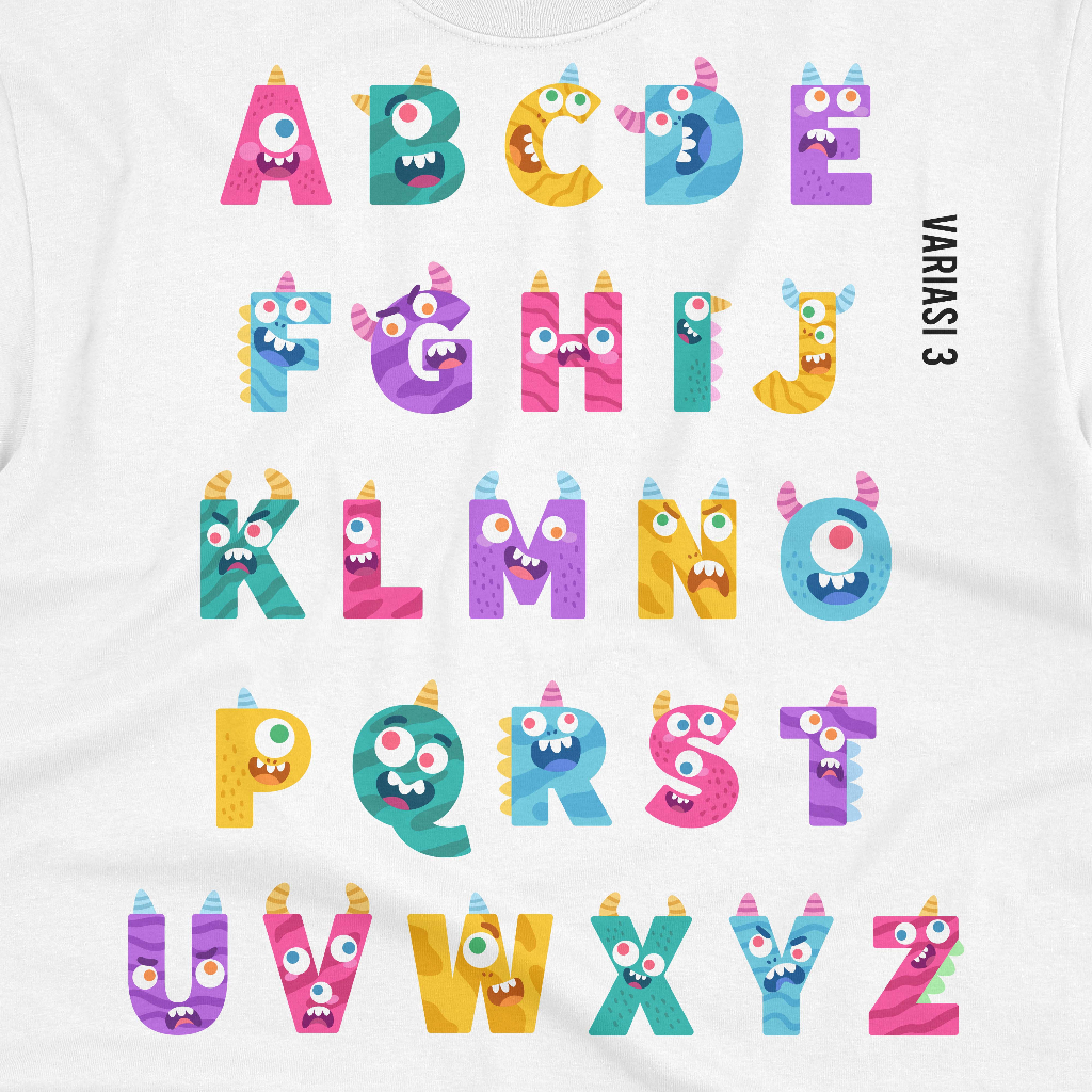 SABLON SETRIKA ALPHABET MONSTER | SABLON DONG HURUF MONSTER KAOS ANAK | SABLON DTF ALPHABET MONSTER CUSTOM BY SABLON DONG