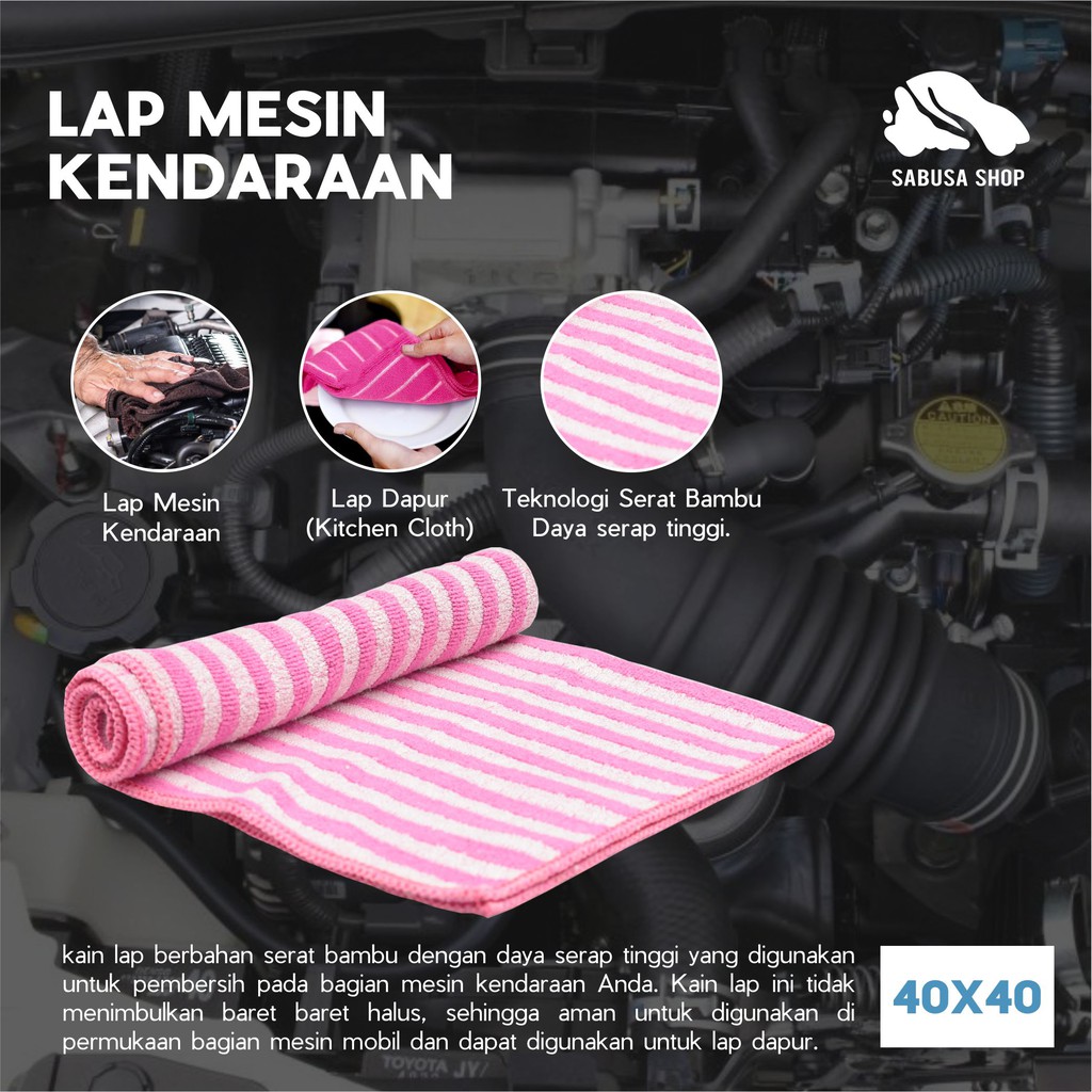SABUSA Lap Microfiber Serat Bambu for Engine Detailing, Engine Detailing Cloth, Lap Pembersih Mesin