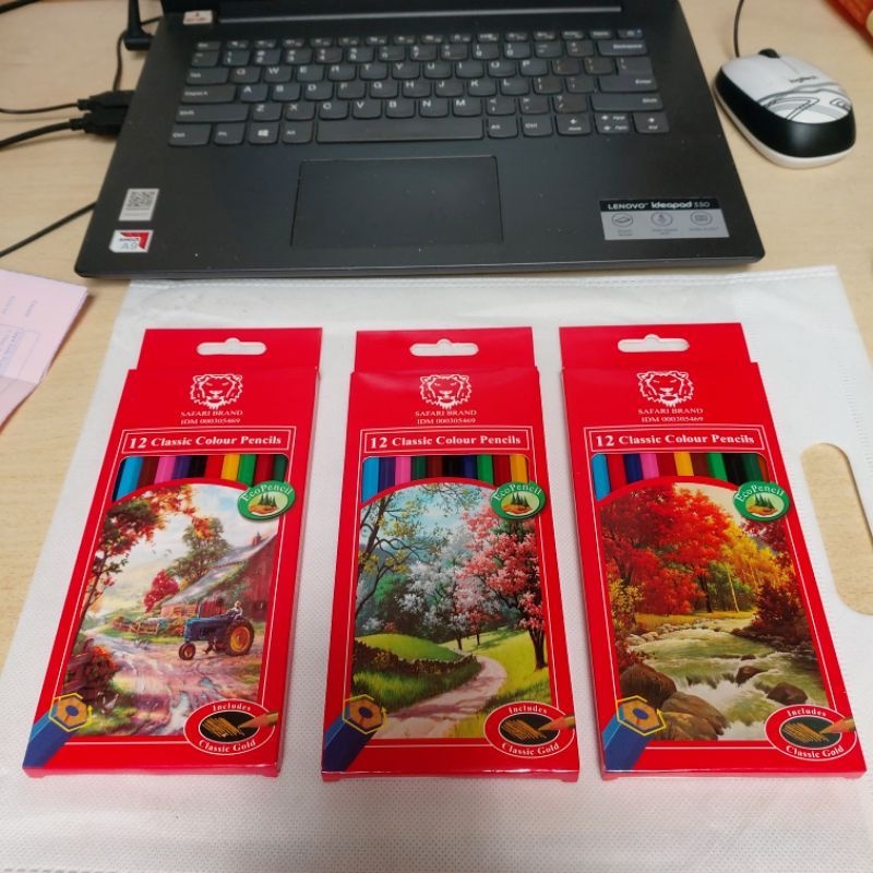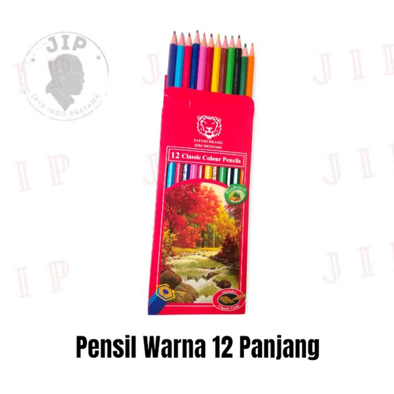 SAFARI PENSIL WARNA 12W PANJANG PENDEK (1SET) - PENCIL COLOURS 12 WARNA MURAH - PENSIL WARNA TAJIMA HIJAU