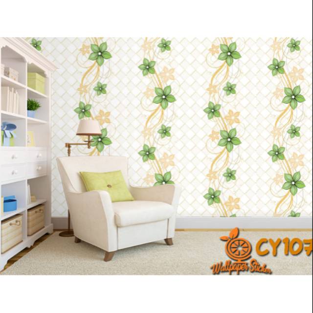 SALUR BUNGA HIJAU GOLD dan BUNGA MERAH Wallpaper sticker dinding ukuran 45 cm x 8 meter