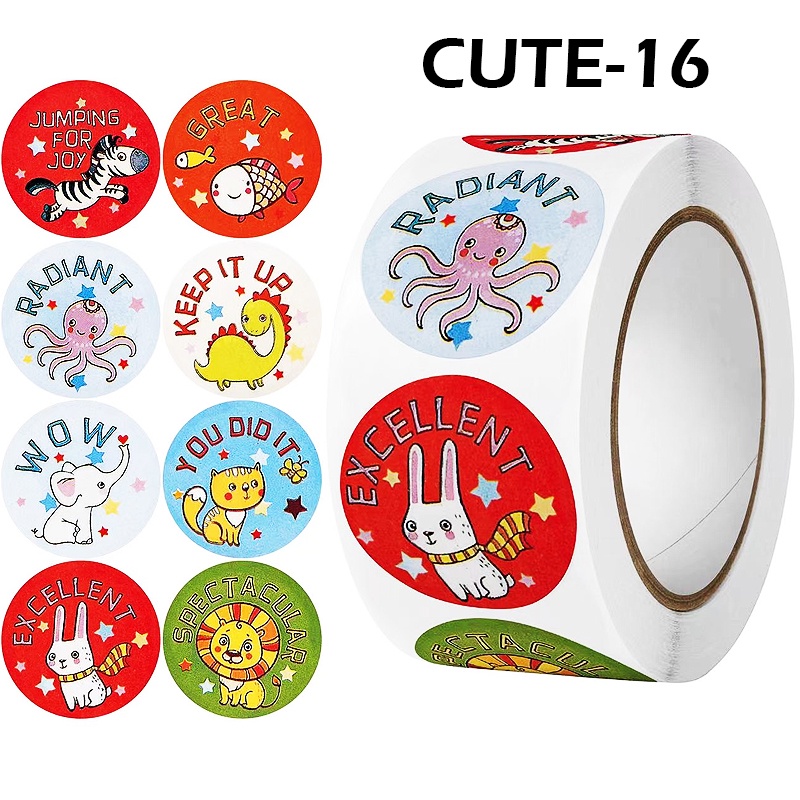 SAMHEZ 500 PCS CUTE LABEL STICKER LUCU STIKER MOTIVASI SEMANGAT ANAK BELAJAR BIRTHDAY THANK YOU ANIMAL HEWAN PONI SMILE