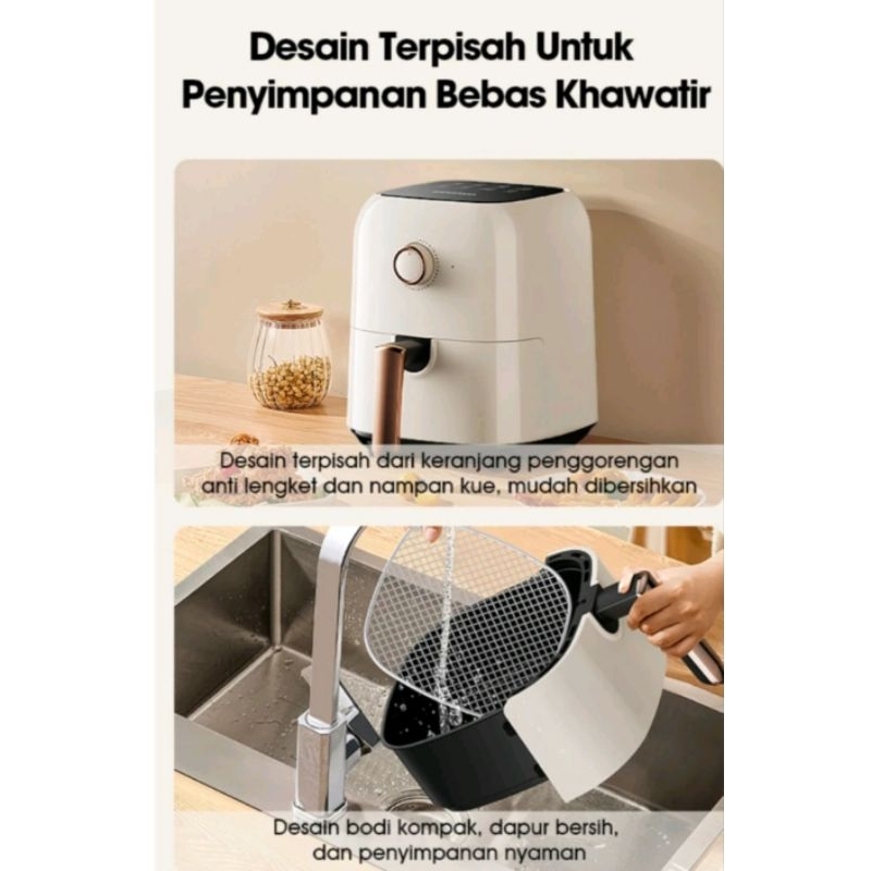 SAMONO Air Fryer 3.5 Liter 650 Low Watt MesinPenggorengan Tanpa Minyak Air Fryer SW-AFW35 White