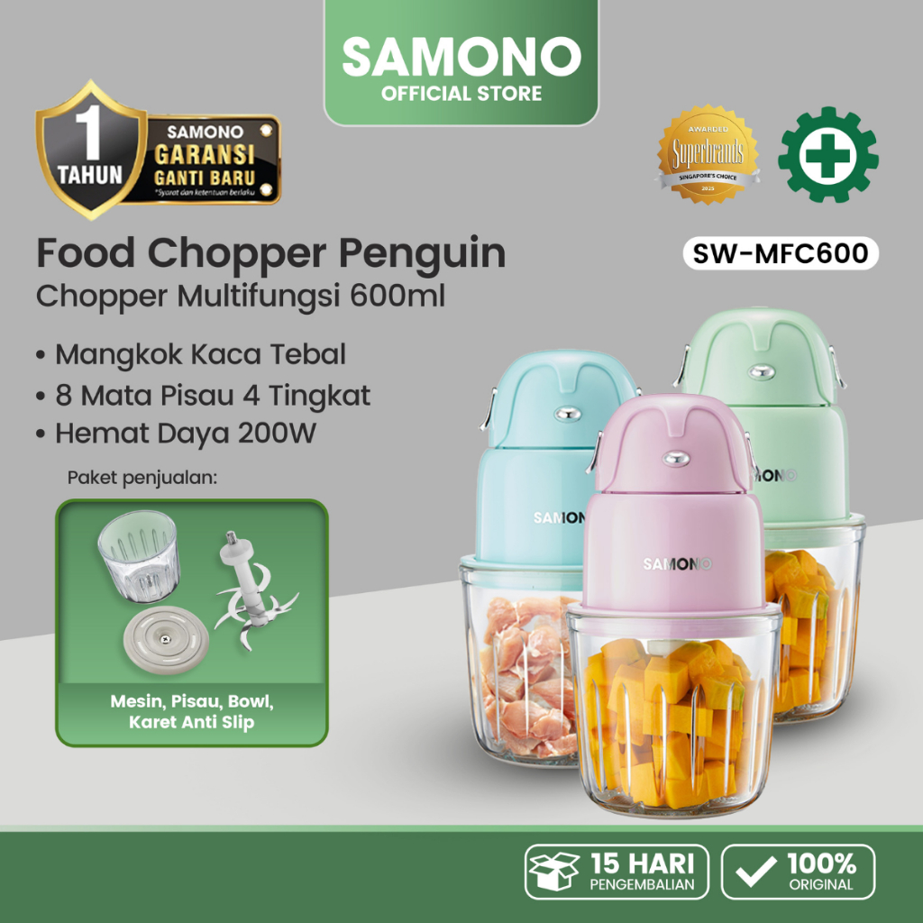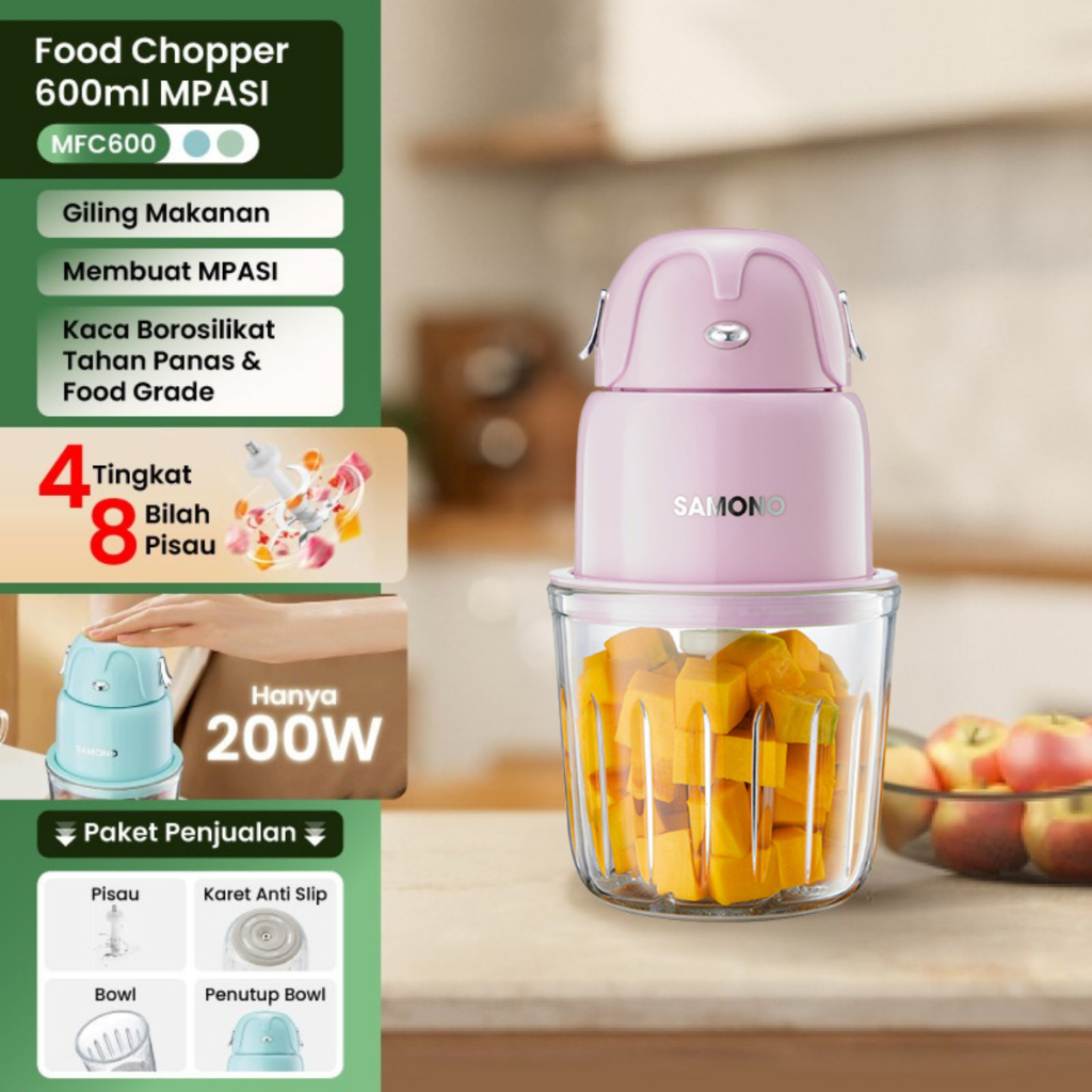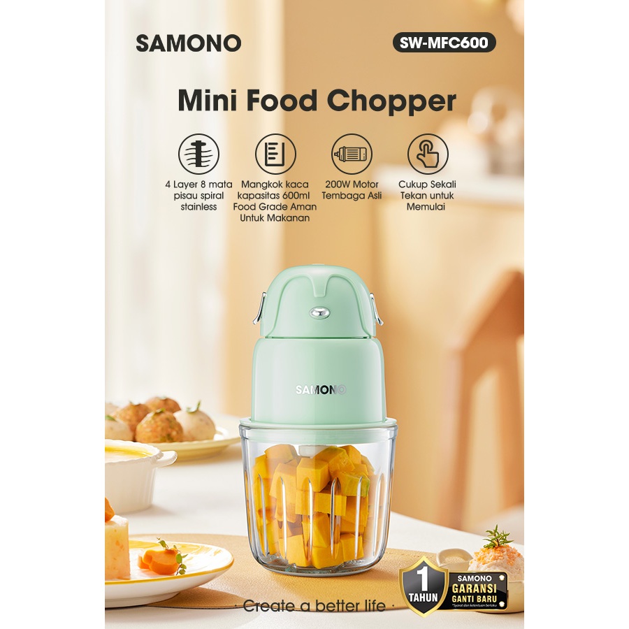 SAMONO Food Chopper 600ml Serbaguna coper daging dan bumbu chopper daging dan bumbu coper bumbu serbaguna samono official store samono chopper chopper mpasi bayi MFC600