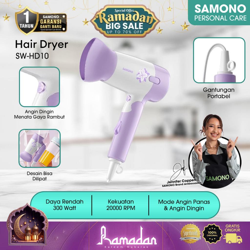 SAMONO Hair Dryer Dengan dua Mode Angin Dingin dan Hangat Daya rendah 300 Watt Travel Friendly Aman untuk Kucing Dan Manusia SW-HD10