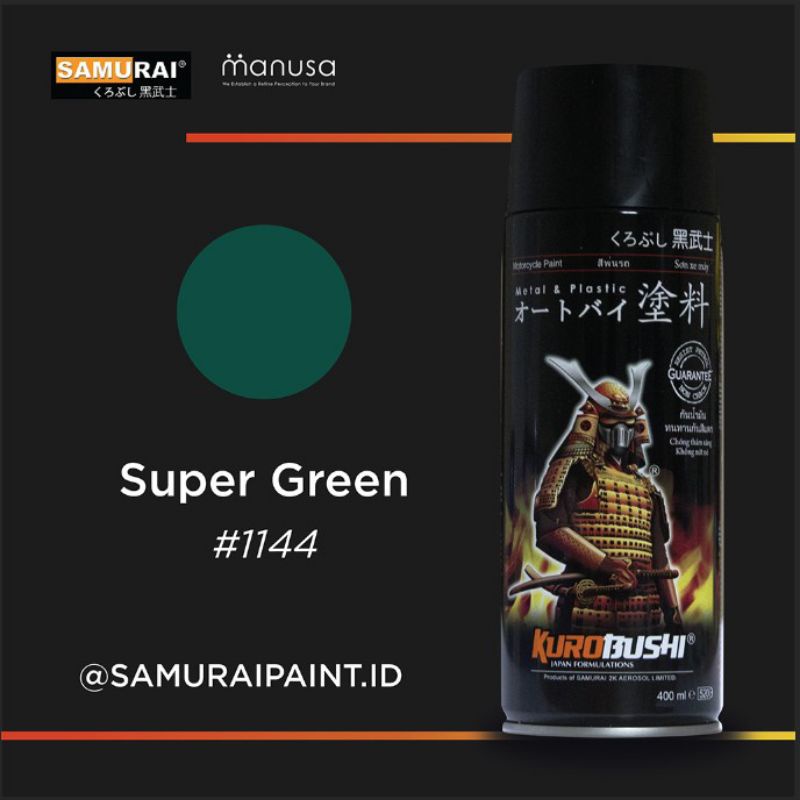 SAMURAI PAINT #1144 SUPER GREEN CAT SEMPROT SPRAY WARNA hijau tua metalik tahan bensin bukan merk PYLOX DITON SAPPORO ULTIMATE RJ PILOX PILOK shogun z