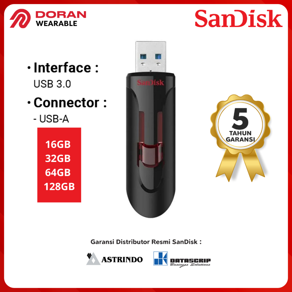 SANDISK Flashdisk SanDisk 16GB 32GB 64GB 128GB USB 3.0 Cruzer Glide CZ600 | Garansi Resmi 5 Tahun