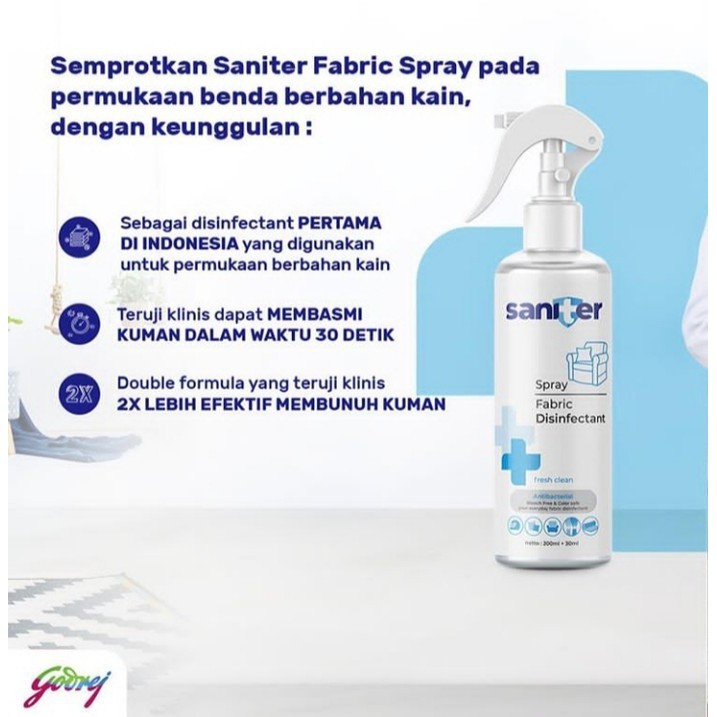 SANITER Fabric Disinfectant 230ml Sofa Baju Spray Linen Selimut Kemeja