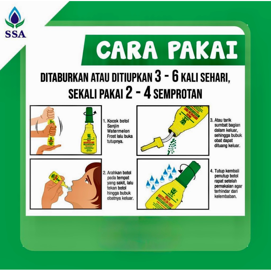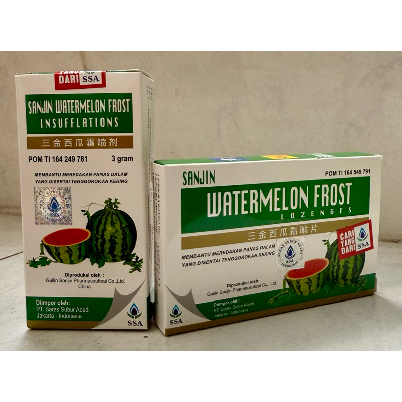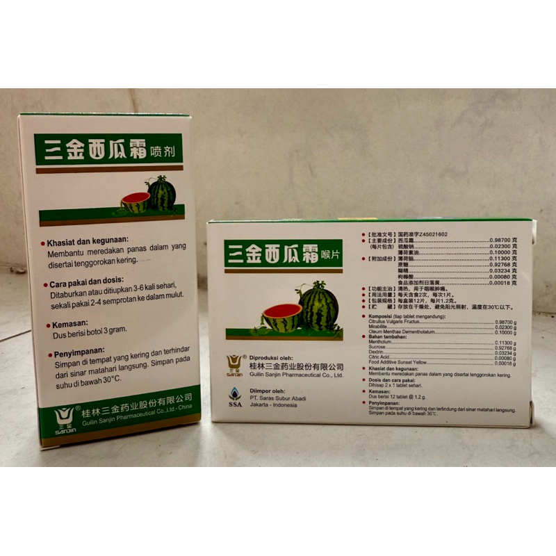 SANJIN WATERMELON FROST INSUFFLATIONS PERMEN SANJIN WATERMELON SEMANGKA / XIGUA SHUANG SPRAY HOU FENG SAN SEMANGKA HOU FONG SAN BUBUK SARIAWAN SEMPROT - Membantu meredakan panas dalam yang disertai tenggorokan kering dan sariawan