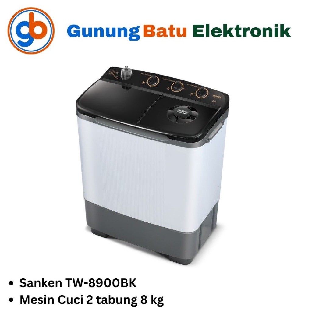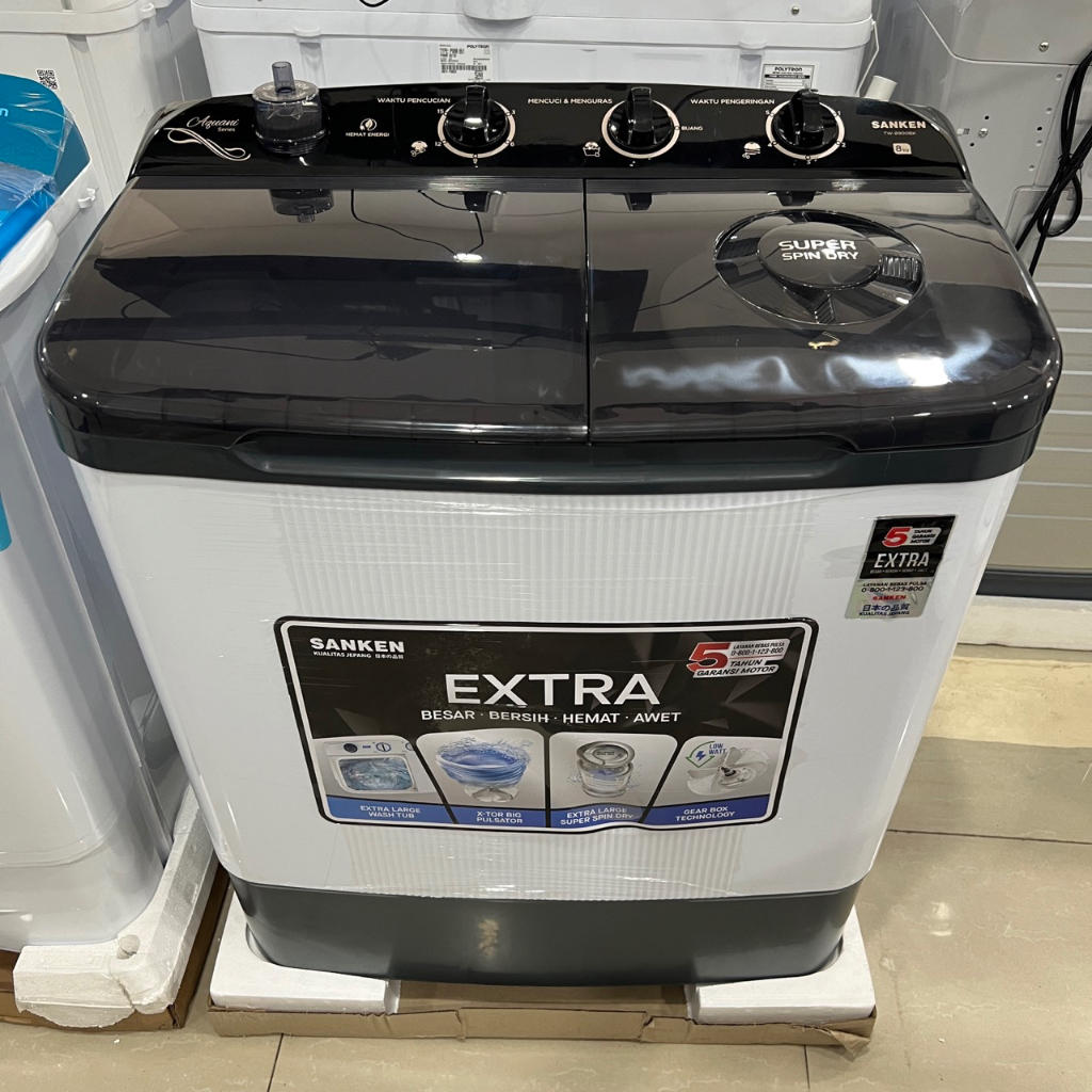 SANKEN Mesin Cuci 2 tabung 8kg TW-8900BK Hitam Garansi Resmi Twin Tub Washing Machine TW8900BK