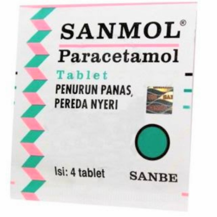 SANMOL STRIP ISI 4 PARACETAMOL PEREDA NYERI DEMAM SAKIT BADAN MERIANG
