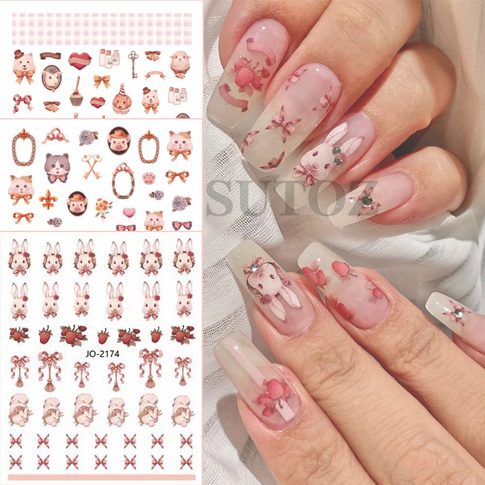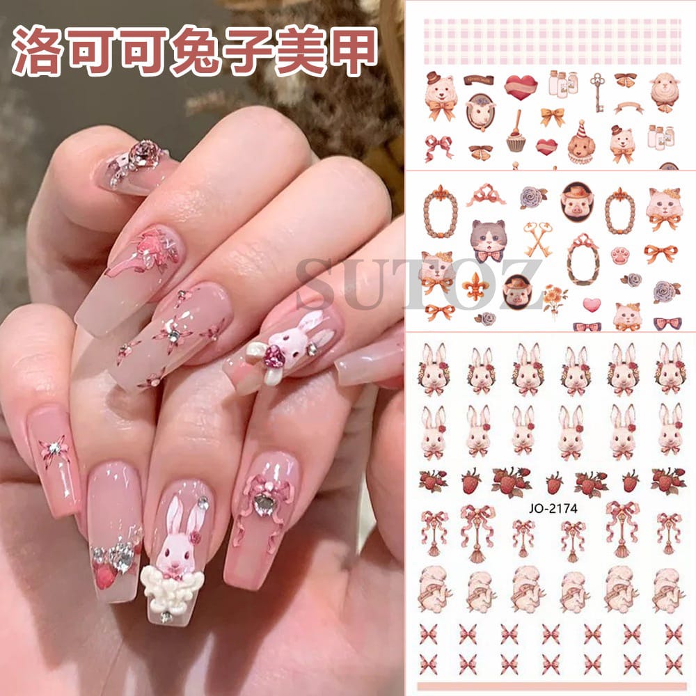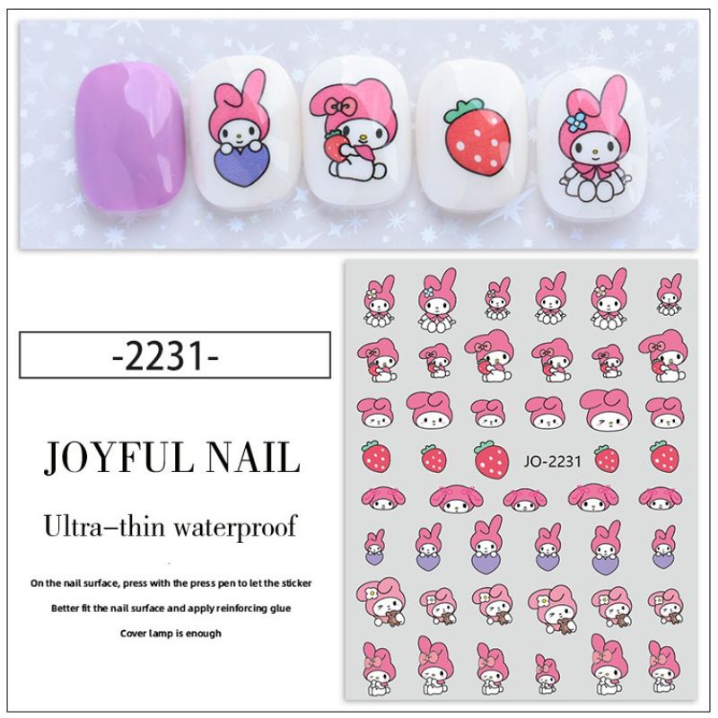 SANRIO STIKER KUKU KUROMI nail art KARTUN dewasa anak motif sapi cow lebah bee kupu butterfly bear beruang love lucu melody cinnamorol