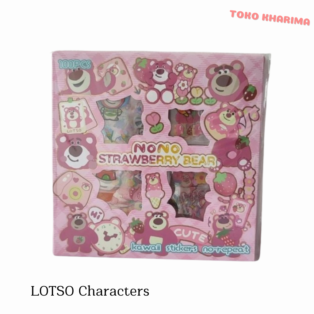 SANRIO Sticker Lucu 2D Box Isi 100 Pcs PVC Anti Air Stiker Karakter Masu Kuromi Latso Momo