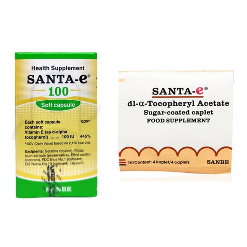 SANTA E 200 IU Vitamin E - 100 IU Botol Isi 30 Dan Strip Isi 4 Kapsul - Vitamin Kesehatan Kulit