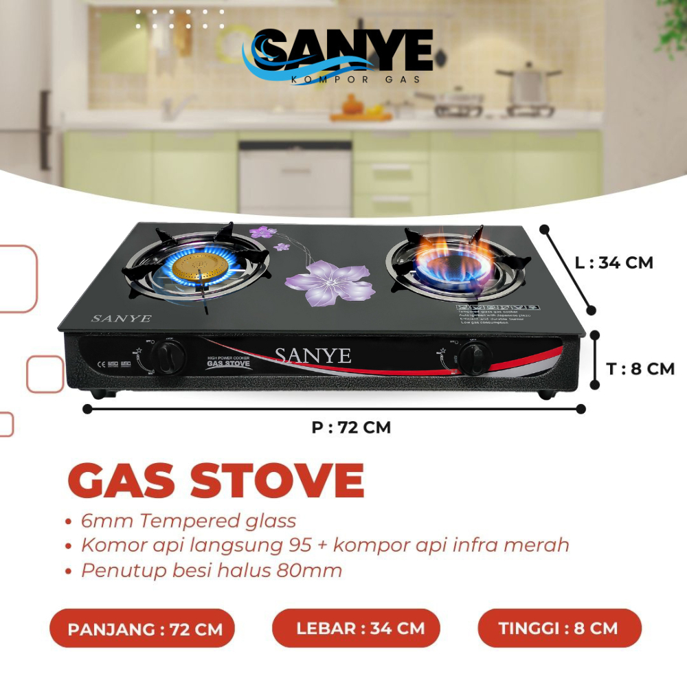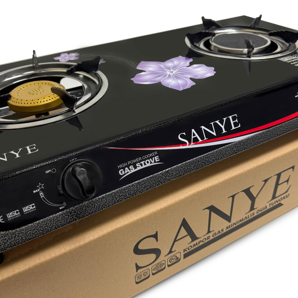 SANYE Kompor Gas Tempered Glass Infrared Mix 2 Tungku H30 Sun Burner Api Biru Gas Stove Infra Merah