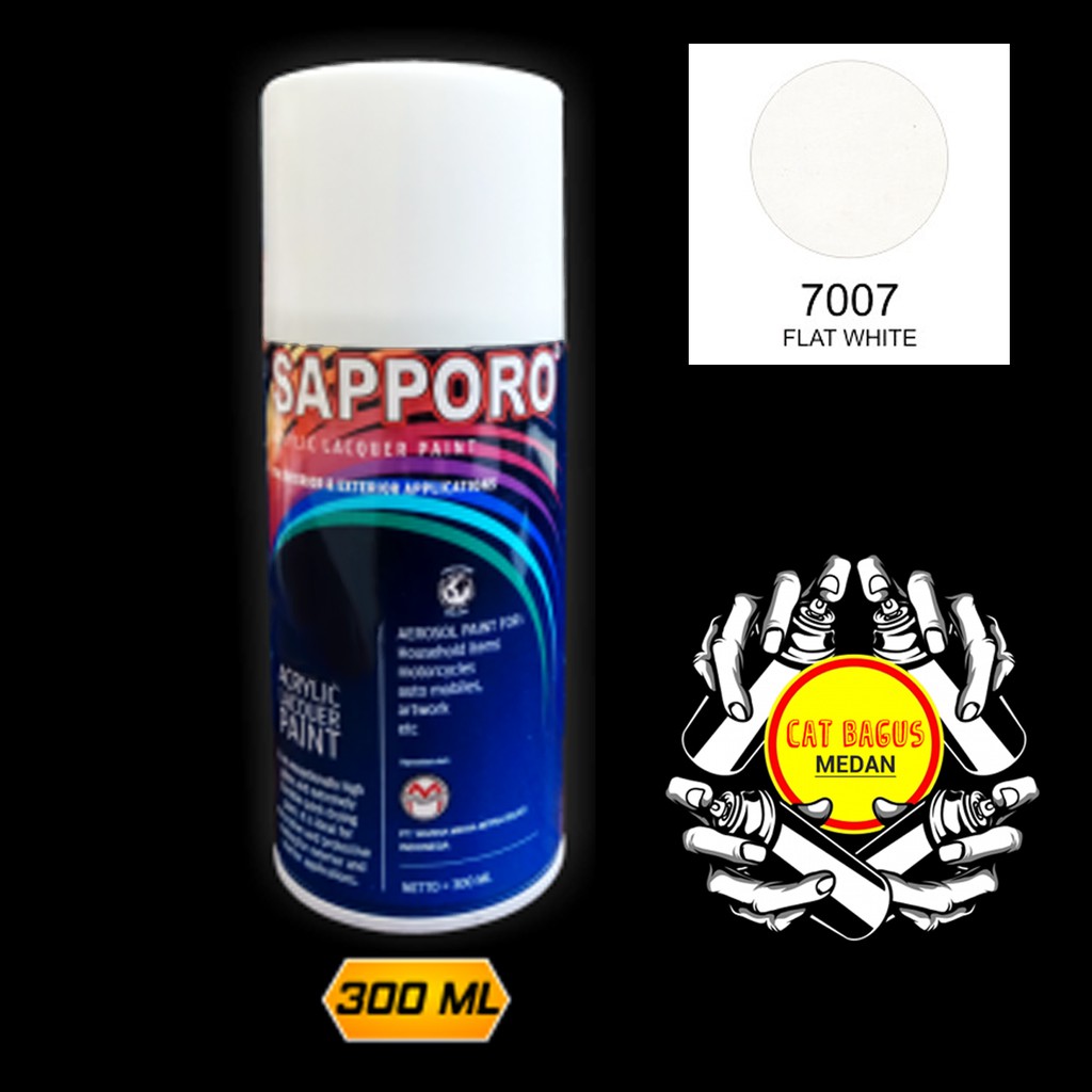 SAPPORO 7007 FLAT WHITE PUTIH DOFF CAT SEMPROT 300 ML CAT MOTOR AEROSOL PYLOX PUTIH DOF DOP BURAS BURAM 820 PILOKS PILOX PILOK DITON PREMIUM SAPORO SAMURAI SHOGUN MEDAN BINJAI SUMATERA